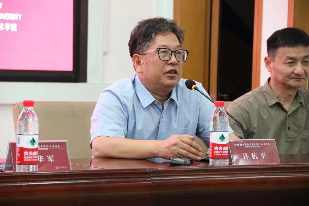 受国家艺术基金委托,湖南省文化和旅游厅艺术处三级调研员林华军,他从课程设置、现实意义以及疫情防控、人身安全需注意事项等方面对培训班的实施提出了建议。