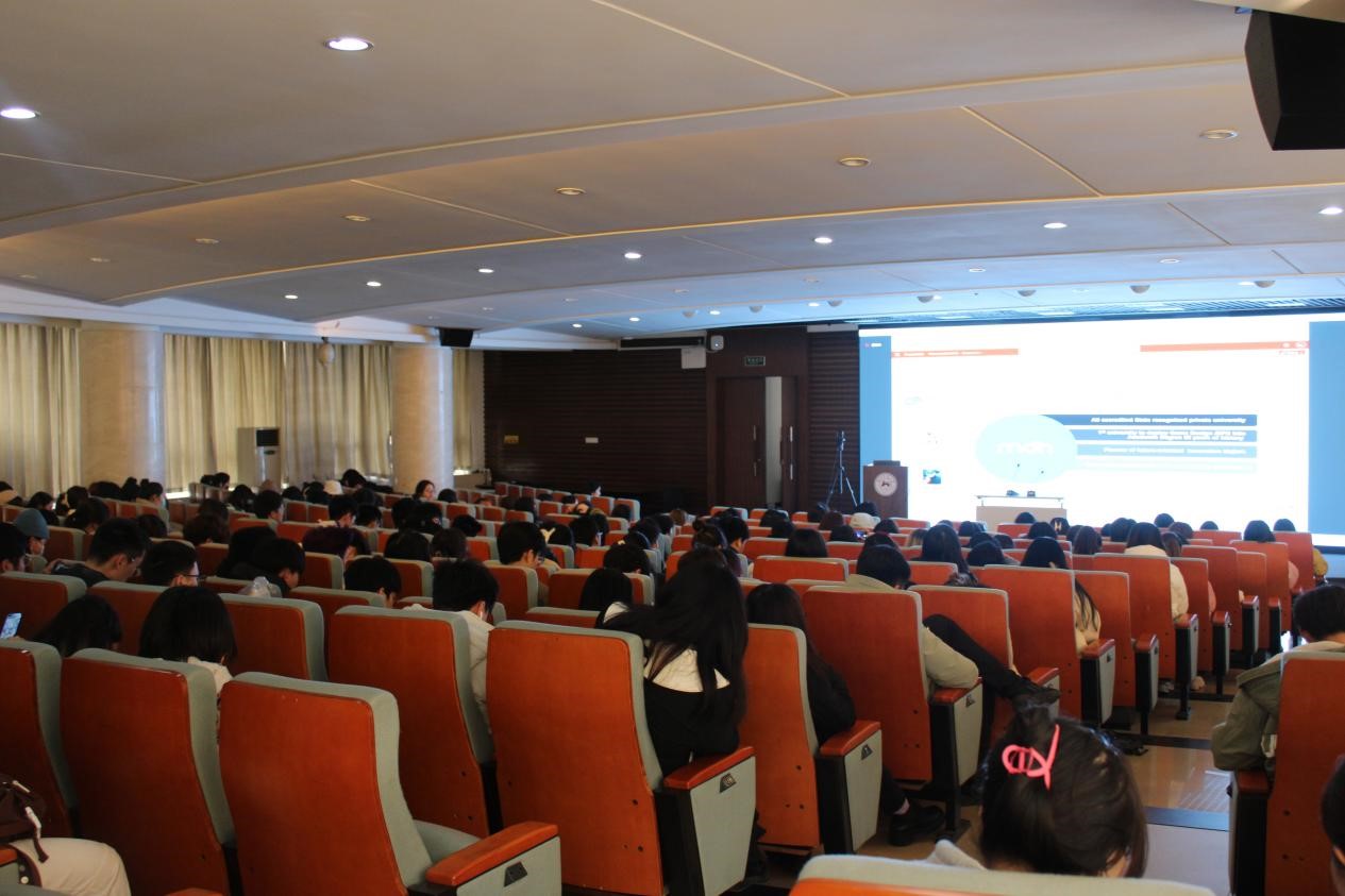 Liang Rongxin老师向同学们介绍了德国留学的特点优势、实习机会以及就业方向等。