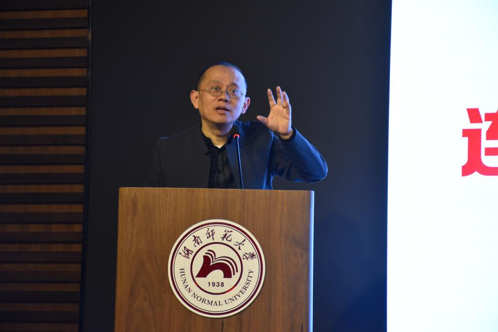 开幕式过后,古湘在设计楼报告厅进行了"偏爱创意,人间值得"的主题讲座。 他为湖南师范大学的同学分享了其从事广告行业30年以来的经历与经验,生动解读了创意思考的内涵与本质,分享了他独到的创意思考方法。 他以"人生非创意不可"为座右铭,以"为什么不"的提问方式激发了在场学子对自身思维模式的重新思考。 他指出创意的主要特点就是解构重组,将旧元素进行新组合。 他坚信,新媒体时代,人工智能永远不会替代有创意的人,因为人类是爱与理性的最高生命载体,始终都会是技术机器的主宰。