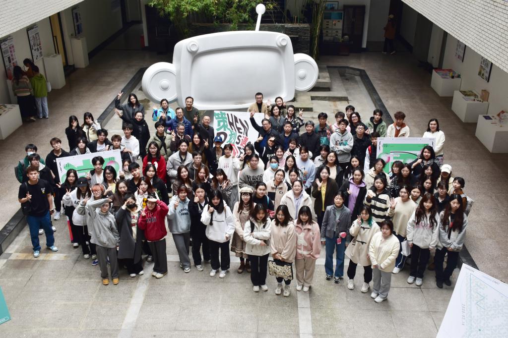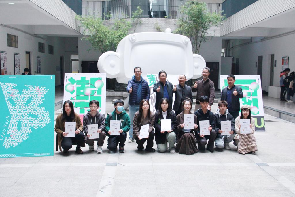 开幕式现场,江波对同学们的学习成果给予高度肯定,他赞扬了三位老师在课程上的辛勤付出,并表示每一次课程作品展都是通向成功的阶段和过程,他鼓励同学们重视每一次的课程展示,以此提升自己的专业能力。 古湘认为此次课程是一次策划的极限挑战,同学们以100小时,完成了教、学、创、赛四个阶段的任务,且每组皆按时完成了合格的策划方案,为此他深受感动。 策划遇见设计,给予了同学们全新的思考视角,全新的创意思维。 将设计融入策划,燃亮学生的创意激情。 他认为00后的设计学子充满了潜力,本次课程成功展便是最有力的证明。 许杭平对以展览作为课程总结的教学形式给予了高度赞许,既展示了课程的学习成果,又提高了学生参与的积极性,并宣布了本次展览正式开幕。