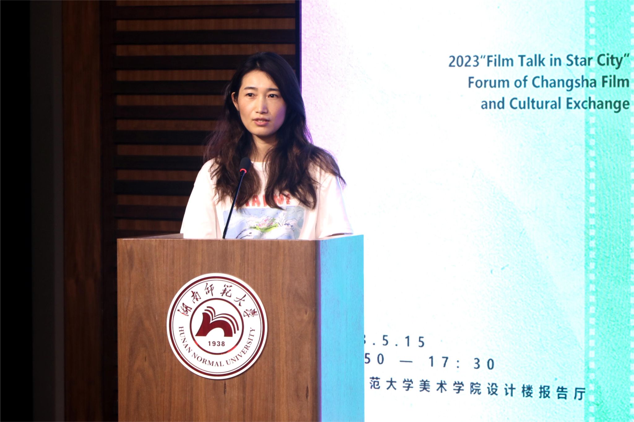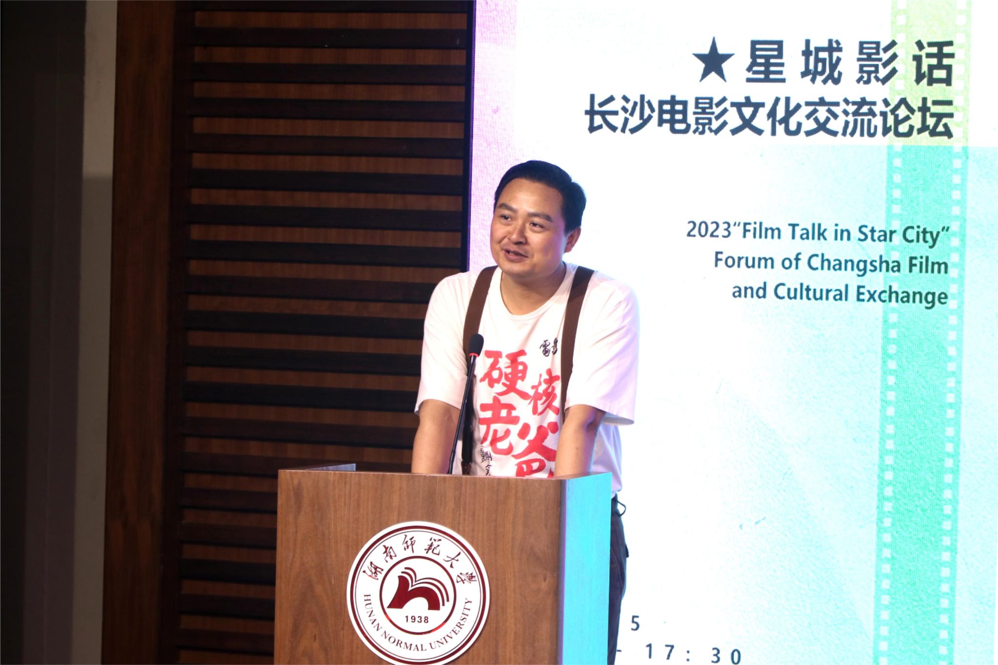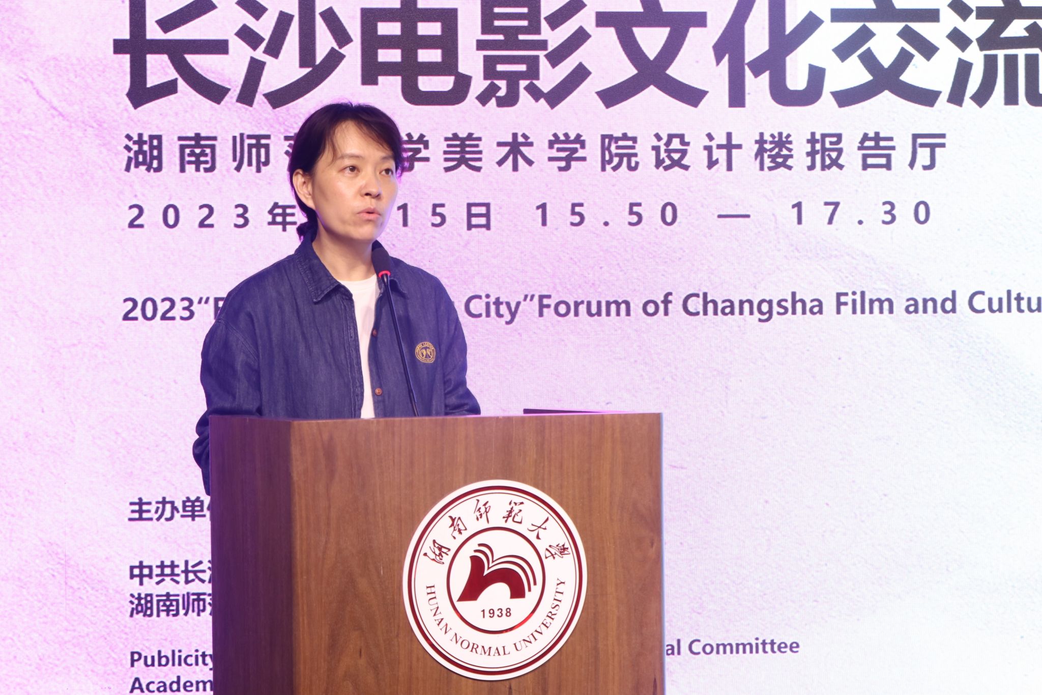 allwincity万象城官方网站数字媒体艺术系主任鲁雯教授发言,她认为《长沙夜生活》中刻画的人物形象不仅是影片的灵魂,更是观众们能够深入理解这部电影所呈现的长沙文化的一扇窗口。我院数字媒体艺术系一直以来也秉承着围绕长沙地域文化来完成影视后期等方面的教学与实践。她表示,本次“星城影话”活动聚焦于长沙,是温暖现实主义的地域化尝试,展现了电影与都市之间互动共生关系的探索,加强了行业交流、校地合作,推动着长沙电影精品创作,在当下具有重要价值和意义。
