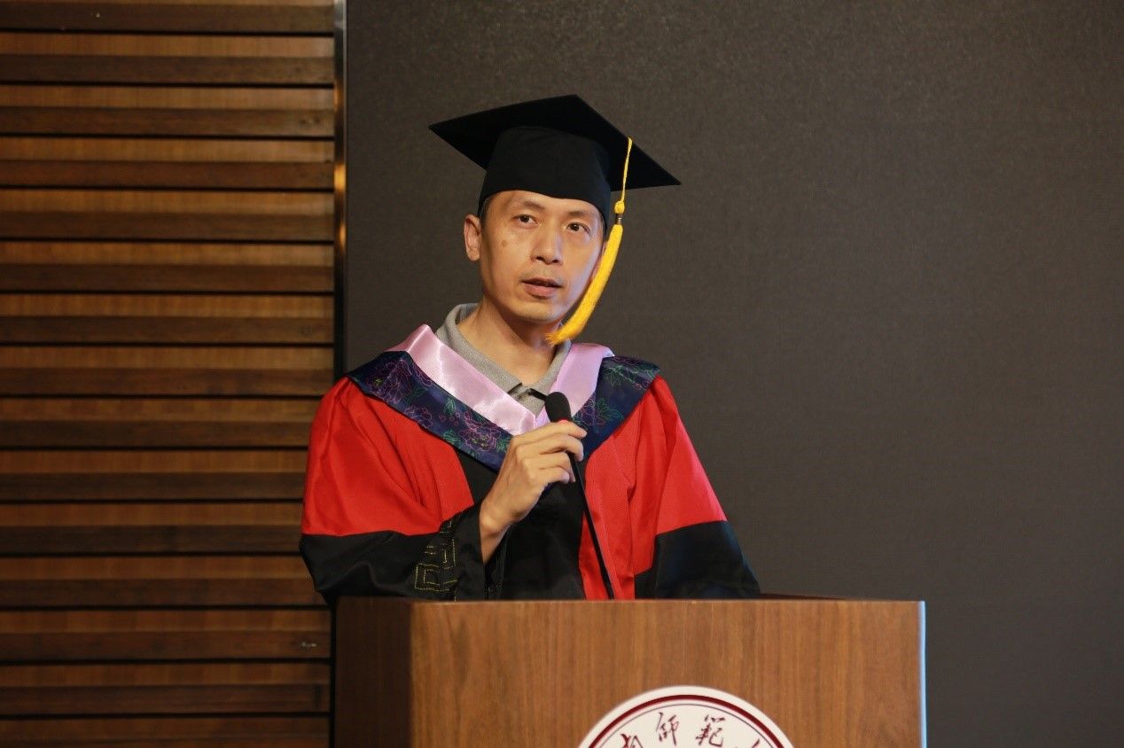 本科生毕业生代表秦念志发言。他回顾了大学四年时光里的追梦历程,号召2023届毕业生在接下来的人生旅途中,继续努力学习和工作,永远铭记“仁爱精勤”的校训,肩负起新时代的重任,不负时代,不负韶华,成为新时代奋勇前进的搏击者,展现我们师大人独有的风采。