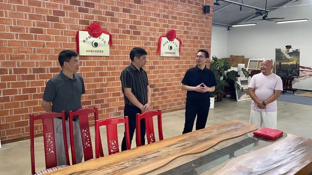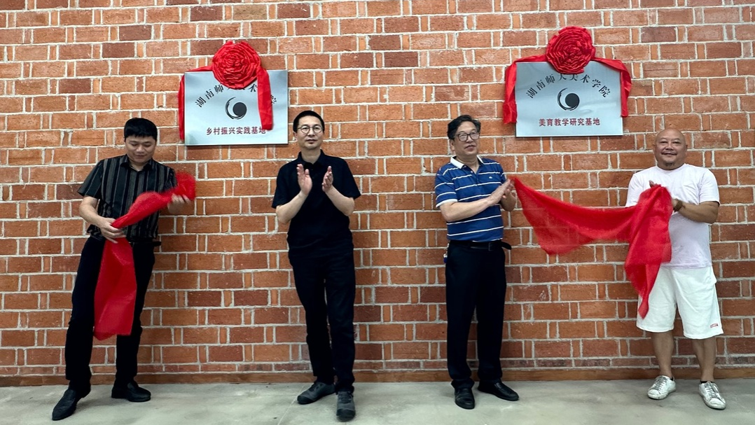 为了推动艺术助力乡村振兴,7月2日,allwincity万象城官方网站院长李少波、书记许杭平及学院设计团队来到浏阳市高坪镇双江村段江华乡村美术馆,举行“乡村振兴实践基地”和“美育教学研究基地”揭牌仪式,高坪镇党委书记张义根主持揭牌仪式。