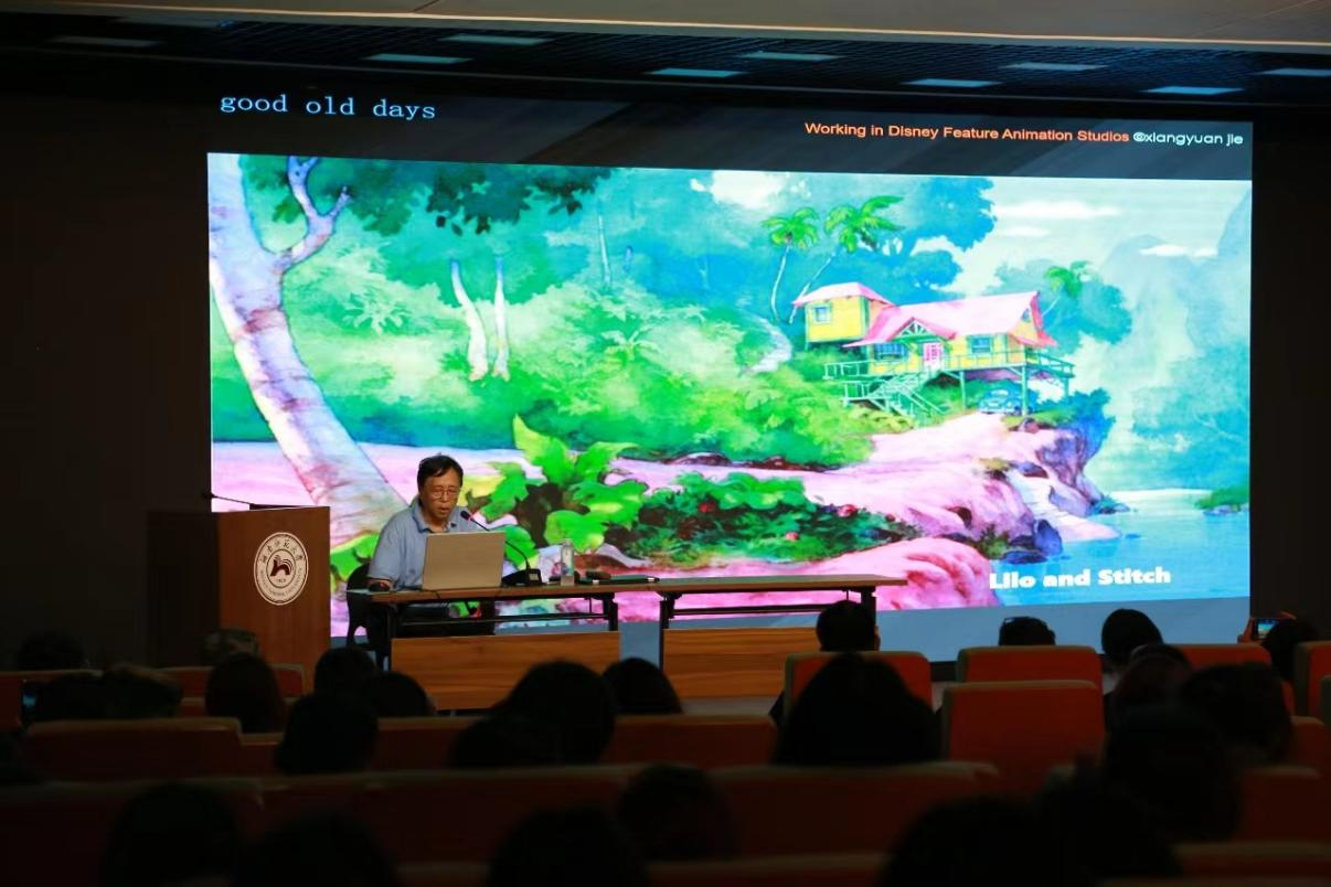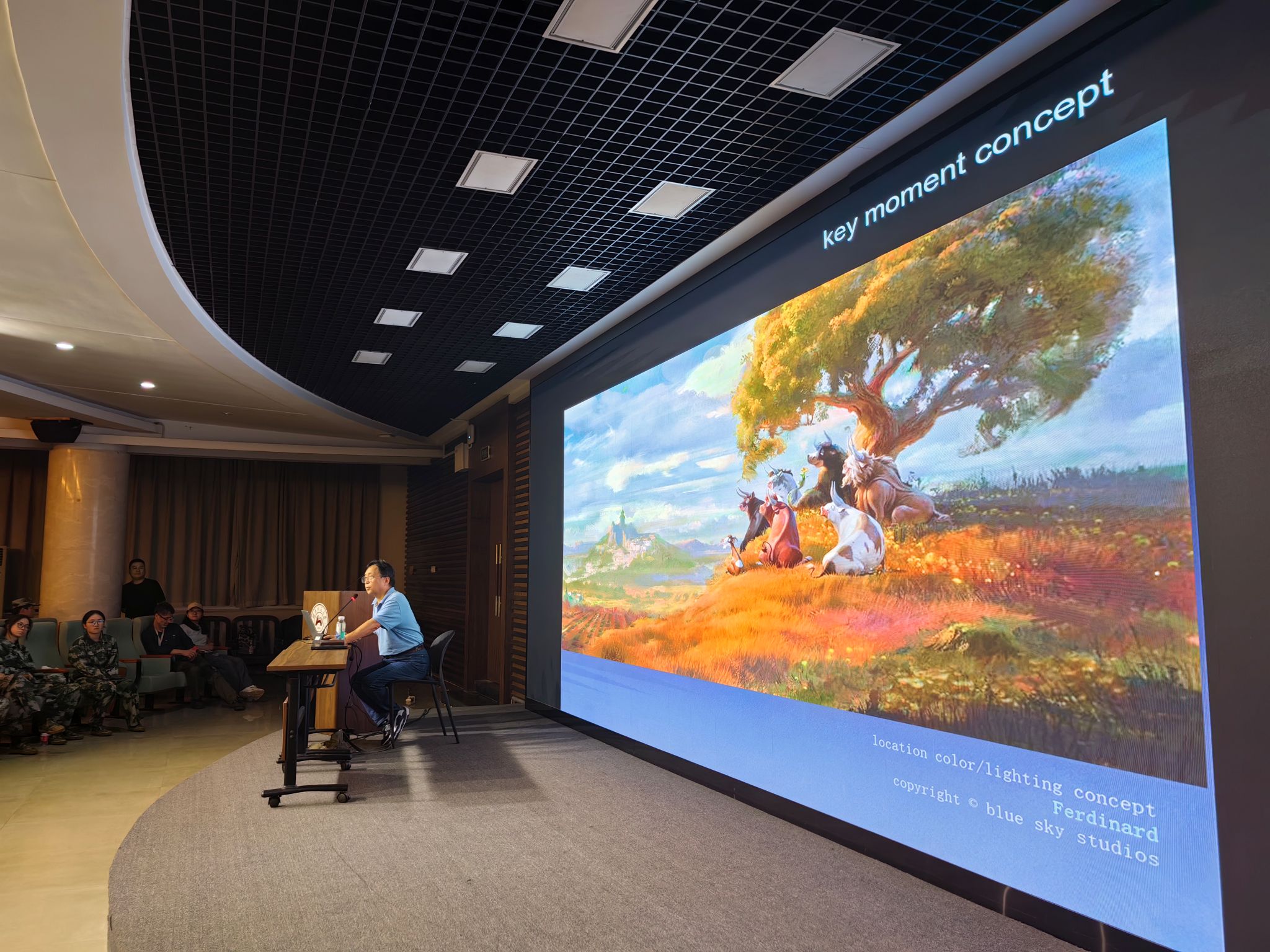 揭湘沅老师结合自己在迪士尼和蓝天动画工作室的亲身经历,通过《花木兰》、《星际宝贝》和《熊的传说》等经典作品为例,向同学们揭示了迪士尼动画电影的创作奥秘。讲座首先带领大家走进迪士尼动画工作室的内部环境,介绍了其动画制作的精细流程,为同学们提供了动画创作的初步理解。继而,揭老师深入分享了国际大厂动画美术师的工作实践,并阐述了这些系统性训练背后的意义,为那些怀揣梦想,希望成为卓越动画创作者的同学们指引了方向。结尾部分,他以《冰河世纪2》为案例,深入解读了概念设计的精髓,并分享了他在技术变革中的见证和感悟,同时对于当前AIGC技术进步下,动画美术创作者的未来路径给予了独到的答疑。