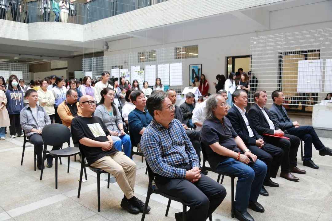 开幕式结束后,领导与嘉宾合影留念,并移步至设计楼二楼学术美术馆参观展览。