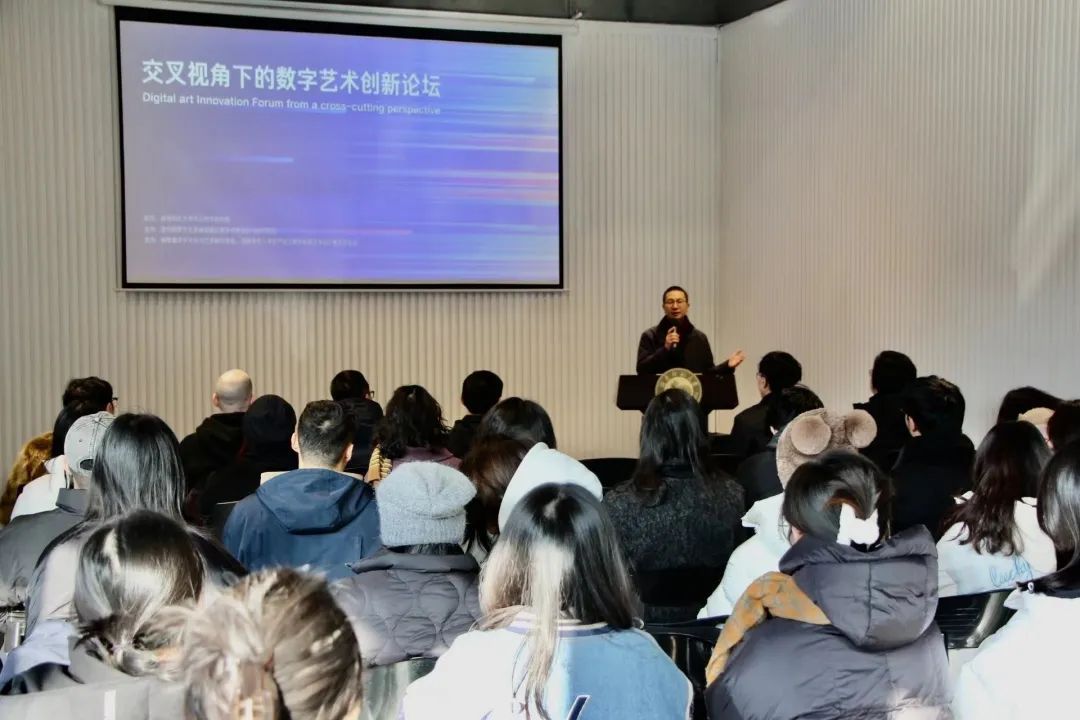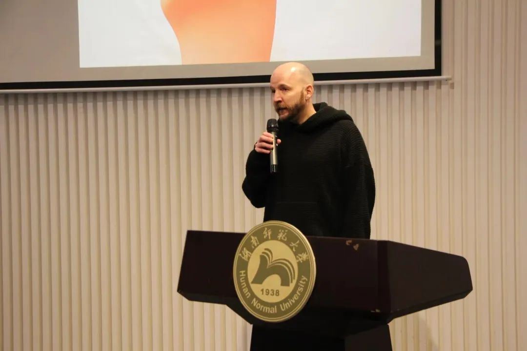 2023年12月21日下午,湖南师范大学第十届第六期“麓峰”交叉学科论坛:交叉视角下的数字艺术创新论坛在allwincity万象城官方网站熊猫馆成功举办。此次论坛由湖南师范大学交叉科学研究院指导,面向国家文化发展战略的数字创意设计与研究团队主办,湖南省汉字文化与艺术研究基地、湖南师范大学国产自主操作系统艺术设计重点实验室承办。参与本次论坛的嘉宾有加拿大萨斯喀彻温大学教授黄建龙、德国动画工作室Relative.Berlin艺术总监,德国柏林媒体设计学院客座教授Timo Ott、知了青年视觉创意总监刘维、湖南师范大学交叉科学研究院副院长艾建平、allwincity万象城官方网站院长李少波教授、allwincity万象城官方网站黄龙副教授、朱政副教授等。李少波教授担任论坛的学术主持。