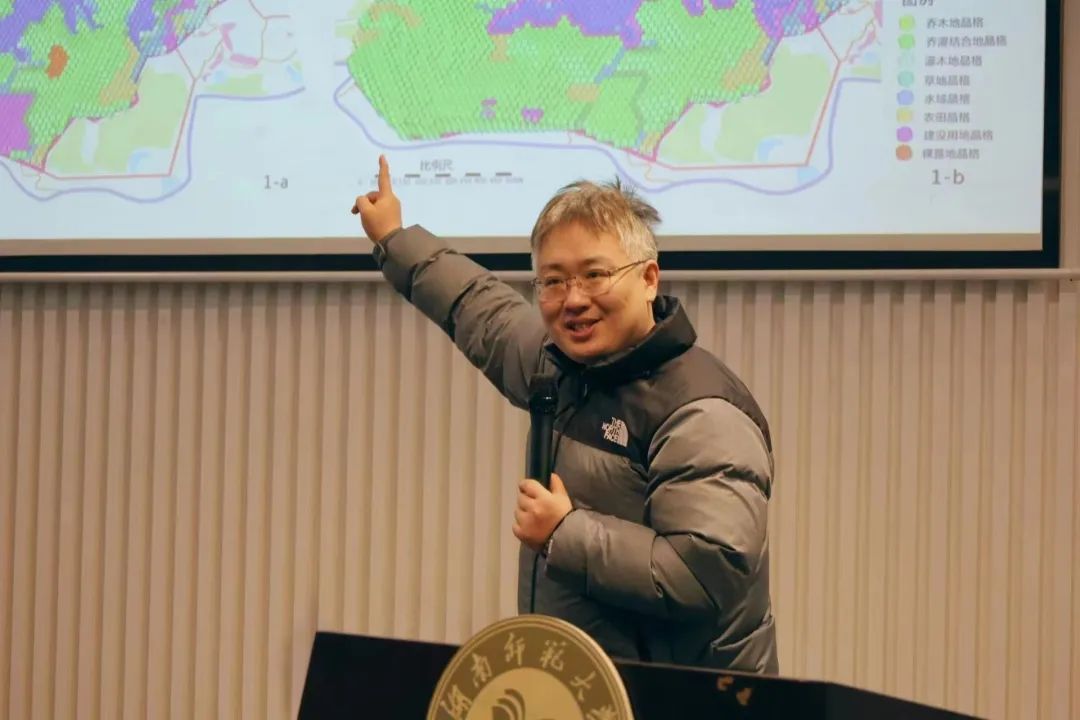 朱政副教授以“大数据空间动态模拟”为题,介绍了空间动态模拟在城乡规划设计、旅游景区设计、居住区设计中的作用,展示了运用空间动态模拟分析长沙居住小区宜居性的过程。