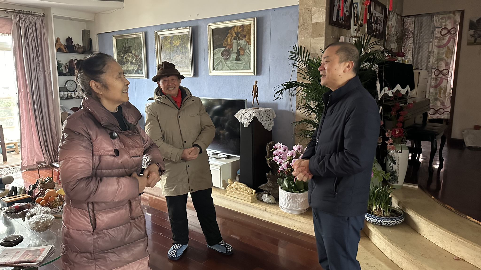 随后,领导一行又来到了离退休老教师唐本佳的家中。刘湘东向唐老师表示感谢和问候,并详细询问了她的身体状况和生活需求。刘湘东表示,学院将一直关心离退休老教师的生活状况,为他们提供必要的帮助和支持。刘湘东还代表学院赠送了春节慰问金,希望能给唐老师带去温暖和关怀。