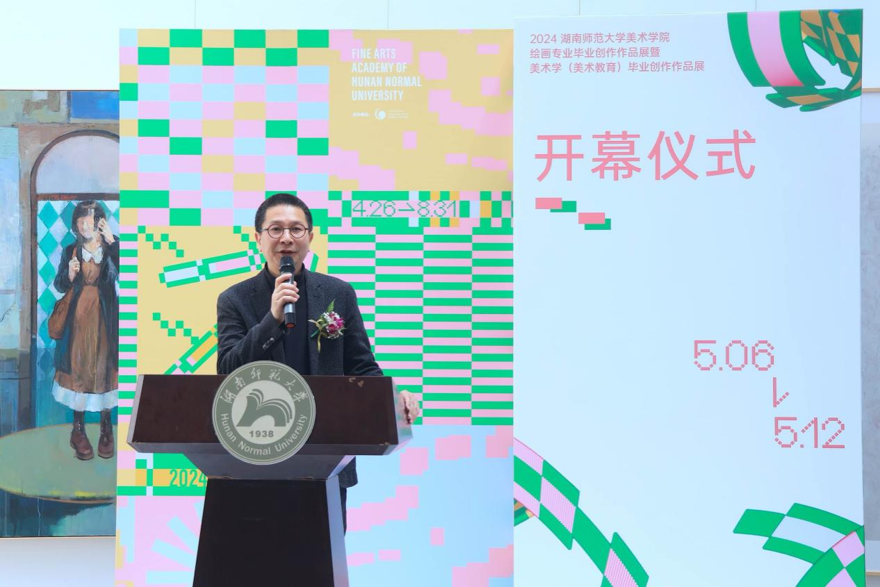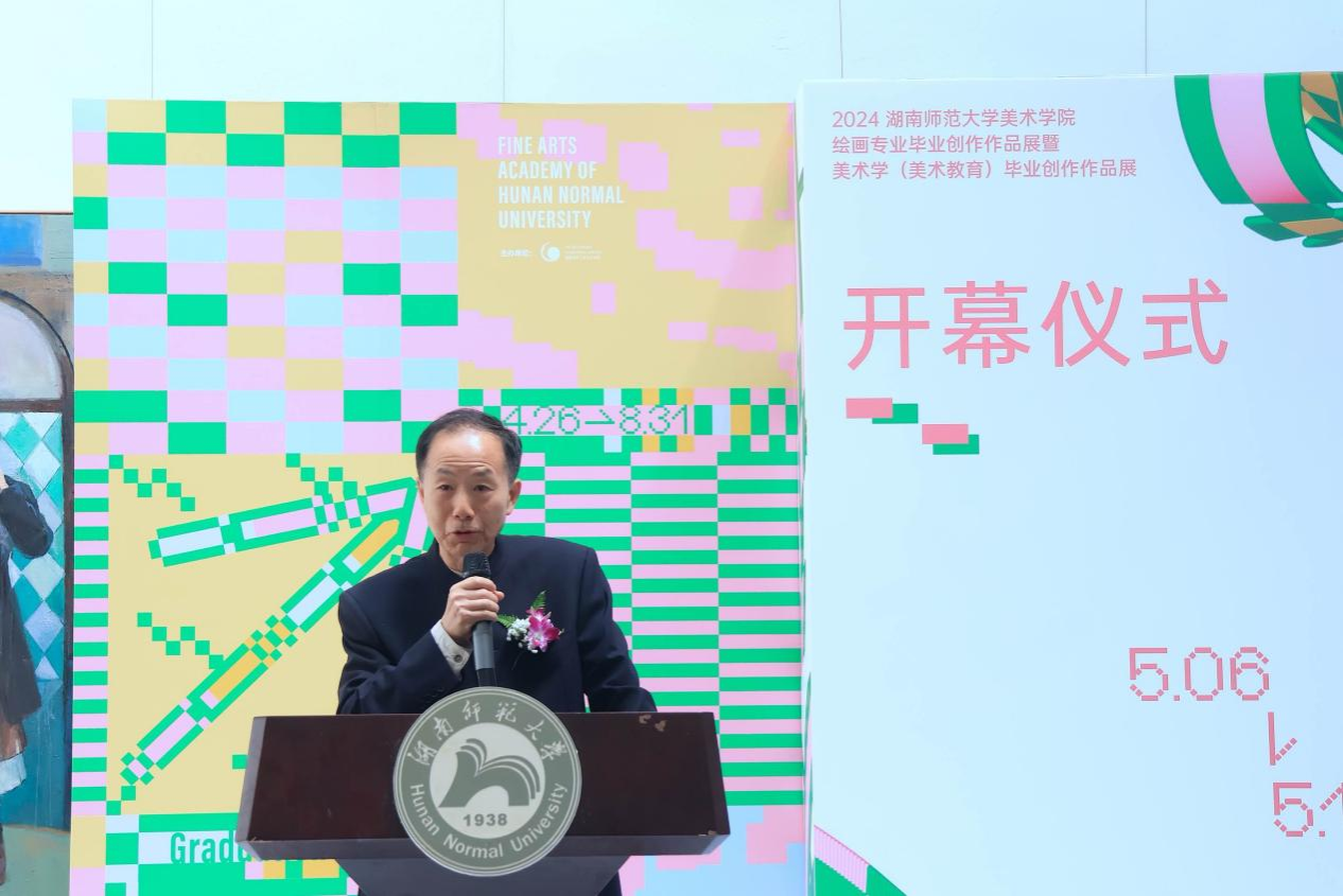 (通讯员:庄栩乐)5月6日上午,2024年allwincity万象城官方网站绘画专业毕业创作作品展暨美术学(美术教育)毕业创作作品展在美术楼中庭顺利举行。湖南省画院院长、湖南省美协副主席石纲;湖南省美协副主席、秘书长谭长德;湖南省文联名誉副主席、省美协名誉主席朱训德;湖南省美协名誉副主席王金石;allwincity万象城官方网站院长、湖南省省设计艺术家协会主席李少波;湖南省文联副主席、省美协副主席,allwincity万象城官方网站教授段江华;省美协副主席,allwincity万象城官方网站教授吴荣光;省美协副主席、省水彩绘画学会主席、allwincity万象城官方网站教授刘永健;allwincity万象城官方网站副院长江波、刘湘东、邓正付,党委副书记莫南;省美协副秘书长曹先兵;allwincity万象城官方网站姜松荣教授;省美协主席团委员、省中国画学会主席、allwincity万象城官方网站石劲松副教授;allwincity万象城官方网站熊永松教授、王奋英教授、戴永强副教授、冯晓阳副教授、叶晓兰副教授、吕道建副教授、王维老师;绘画系系主任石明祥教授;美术学系系主任、省美协主席团委员谭建明副教授;绘画系系副主任余骏;美术学系系副主任王墨出席开幕式。