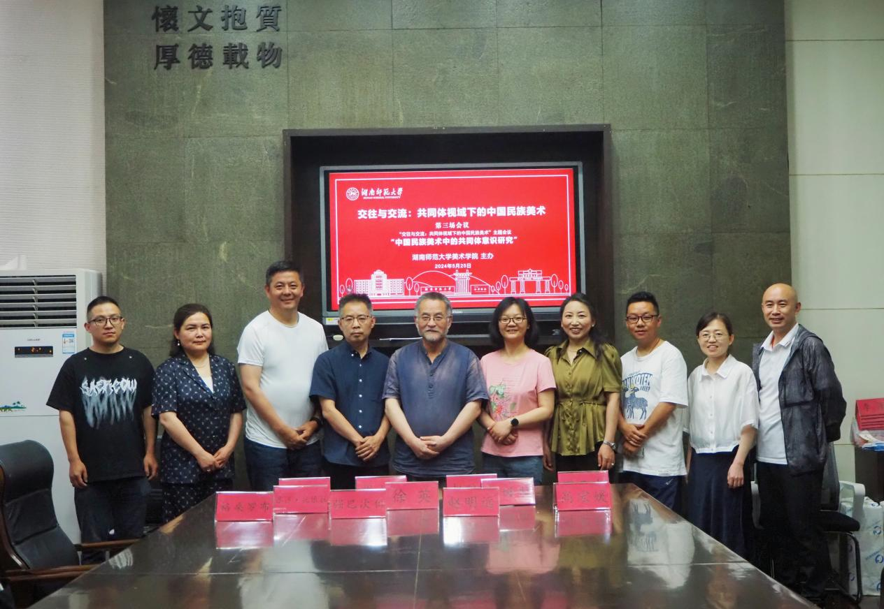 2024年5月24日至25日,“交往与交流:共同体视域下的中国民族美术”学术会议在我院举行,会议分专题会议、圆桌会议、主题会议三个部分展开。参加此次会议的省外学者有:《内蒙古艺术学院学报》副主编徐英教授、中央民族大学赵盼超教授、《中国民族美术》编辑部主任丁三丰教授、拉萨师范高等专科学校仓姆啦教授、西藏大学王琳副教授、《西藏艺术研究》(藏文版)副主编强巴次仁博士、西藏墙星文化公司设计总监格桑罗布副教授、新疆大学苏沙·托依拉博士、西北民族大学高宏媛博士后、湖北工程学院胡小龙博士。此外,与会人员还有湖南女子学院张曼华副教授、湖南博物院江楠博士后、湖南工艺美术职业学院赵明远博士等省内学者,以及我院院长李少波教授、副院长刘湘东教授、姜松荣教授、吴卫教授、肖弋教授、熊永松教授等学者。