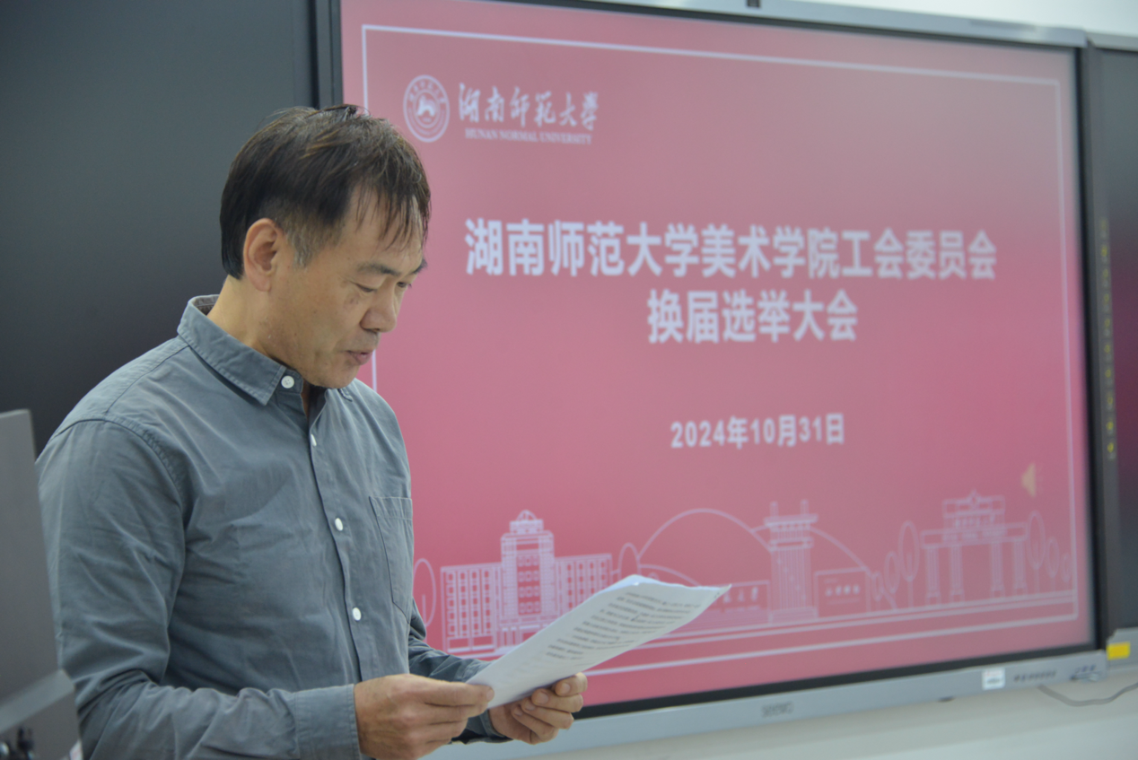 院工会主席王维老师向大会作工作报告。他回顾了2006年至2024年的工会工作,学院工会在院党委的正确领导下全体职教工的共同努力下,情系美院 ,服务大局 ,为学院高质量发展保驾护航。