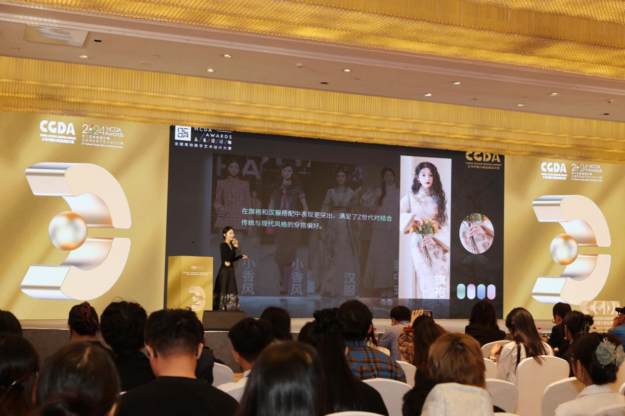 近日,在浙江省义乌市举办的第七届“义乌中国小商品城”杯国际小商品创意设计大赛暨第12届未来设计师NCDA大赛创新创业赛道中,我院黄龙老师指导的研究生宋天姿、刘诗圆凭借作品《花镶容-Z世代新中式国潮秋冬穿戴甲设计》在众多参赛作品中脱颖而出,获得创新创业赛道全国一等奖和全场最佳创意奖,并获2万元奖金。