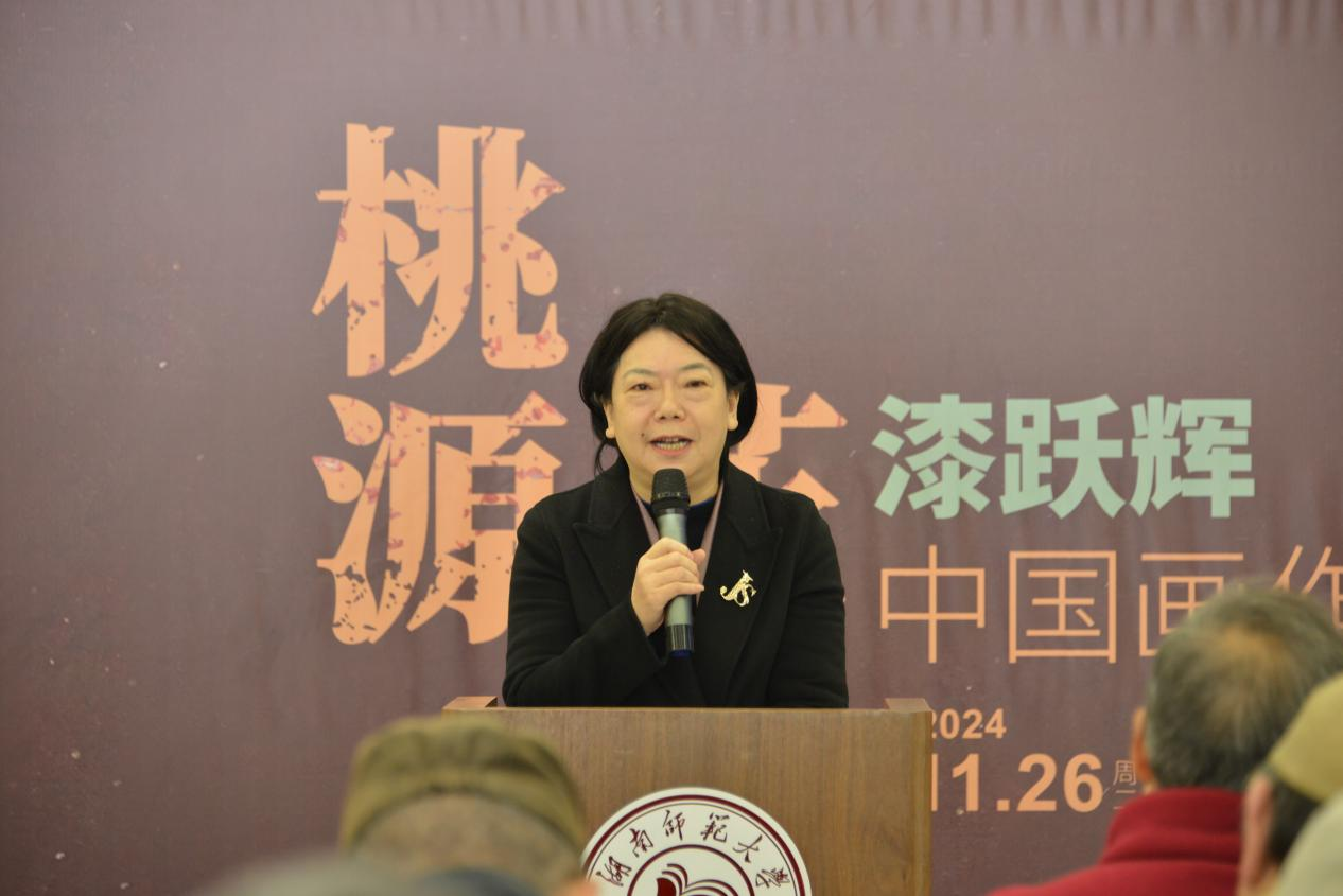 校纪委书记姚春梅代表学校对展览成功举办致谢并宣布开幕,肯定与祝贺漆跃辉守正创新、弘扬传统文化及创作诸多优秀作品之举。开幕式上,漆跃辉向母校湖南师范大学捐赠作品与画册。中国美术家协会美术理论委员会主任尚辉,湖南省文联名誉副主席、省美协名誉主席朱训德,省文联副主席、省美协主席旷小津,常德市文联党委书记蔡胜猛依次致辞。
