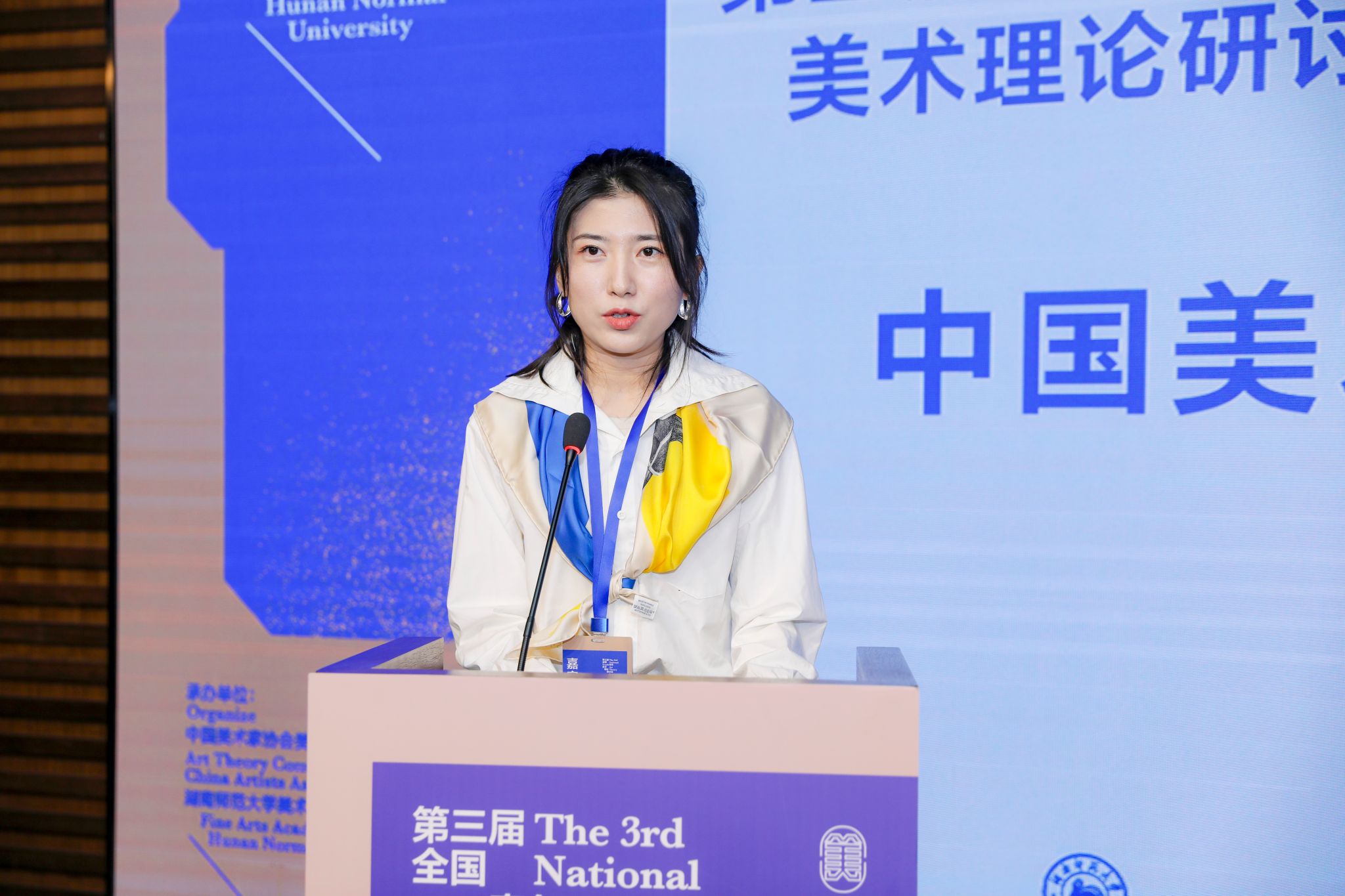 尚辉介绍本届研讨会的一大亮点,是50余位入选论文作者相聚allwincity万象城官方网站,共同见证了“第三届全国青年美术理论研讨会”的盛大召开,通过主旨发言、圆桌讨论和岳麓茶叙,青年学者们得以在浓郁的学术氛围中分享各自的研究成果;特别是青年学者与中国美协理论委员会资深学者相互切磋、思想碰撞,不仅展现了中国美术理论研究事业的传承与发展,也彰显了学术薪火代代相传的生动局面。作为此次研讨会的青年学者代表,中央allwincity万象城官方网站助理研究员陈青青在开幕大会上表达了青年学者的共同心愿,她呼吁青年学者要紧跟时代脚步不负使命。