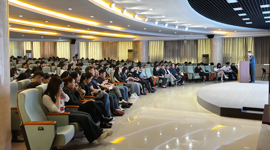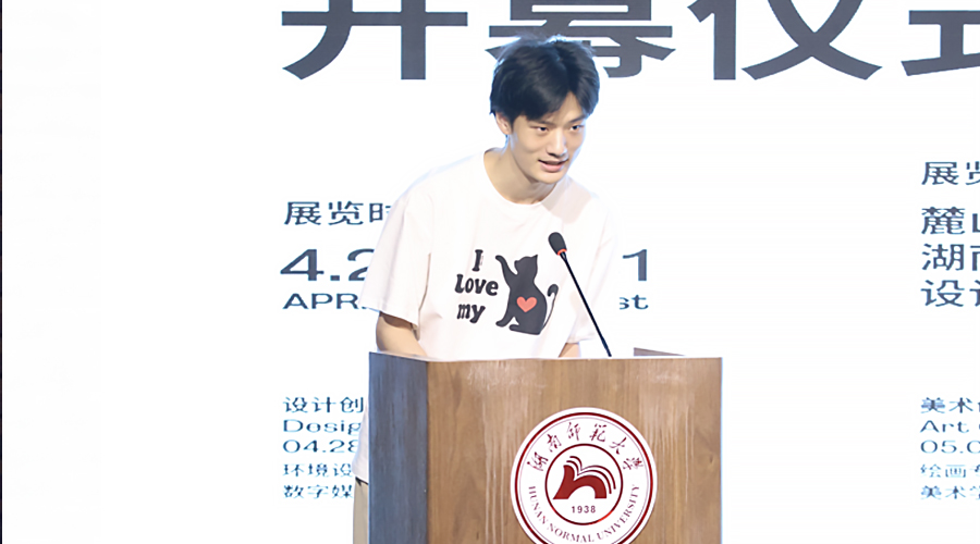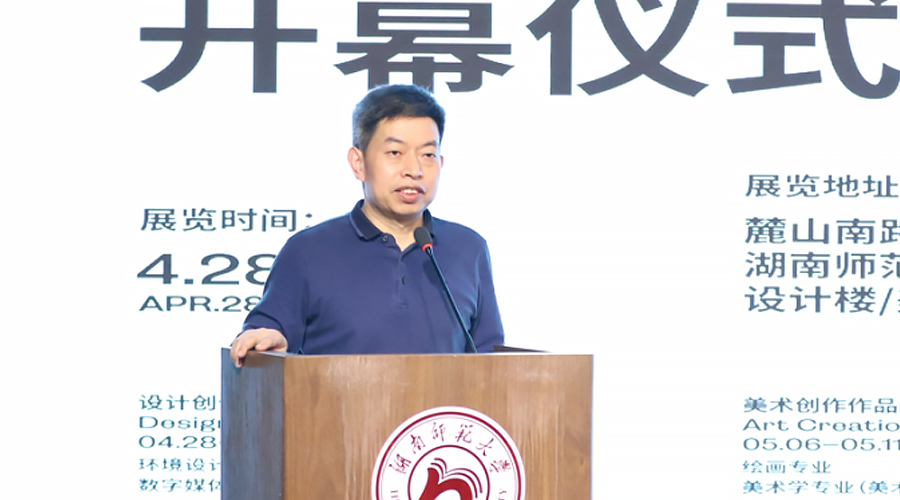 湖南省设计艺术家协会秘书长桂赛在发言中充分肯定了展览的学术价值与社会意义。他鼓励毕业生坚守设计初心,在虚实共生的时代浪潮中,积极探索多元的艺术表达路径,勇担新时代艺术工作者的社会责任,为行业发展贡献力量。