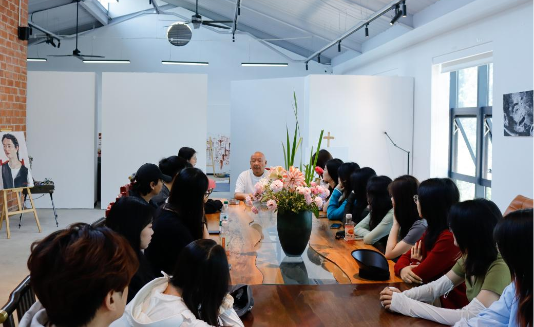 5月11日,学院第四期“20×20与师说”茶话会在浏阳段江华乡村美术馆举行。段江华教授与20名研究生代表围绕艺术创作、乡村振兴等议题进行深入交流,副院长刘湘东出席活动。