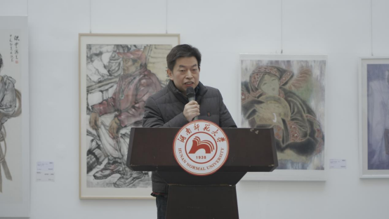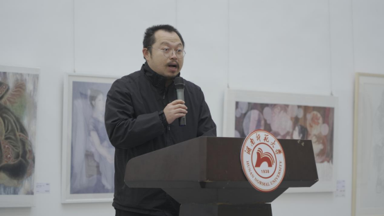 院长李少波致开幕辞,他强调本次展览是学院深化教学改革、推动美育创新的重要成果。他认为艺术教育不仅是技艺的传承,更是时代精神的表达。希望同学们以作品为媒介,传递对社会、文化的思考。