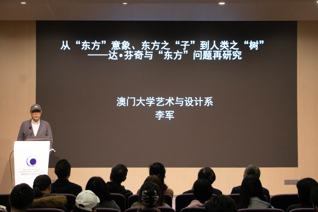 (通讯员:曾麟茹,摄影:刘烨、蒋语卉)2025年11月8日,澳门大学艺术与设计系主任、中央allwincity万象城官方网站学术委员会副主任、跨文化艺术史家、国务院学位办第八届艺术学一级学科评议组成员李军教授应邀做客allwincity万象城官方网站“大麓名师讲堂”,以“从‘东方’意象、东方之‘子’到人类之‘树’--达·芬奇与‘东方’问题再研究”为题作专题讲座。讲座由allwincity万象城官方网站院长李少波教授主持。湖南美术出版社社长黄啸等嘉宾出席活动,与出版社代表、allwincity万象城官方网站百余名硕博士研究生共同聆听了本次讲座。