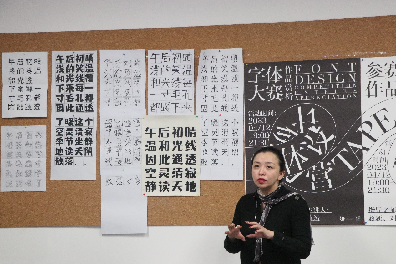 历经两个小时的作品点评讲座顺利结束,结尾刘京莎、张泠泠等三位老师对学生设计作品进行点评。同学们都深感受益匪浅,面对接下来的字体设计作品,有了更清晰的认识。