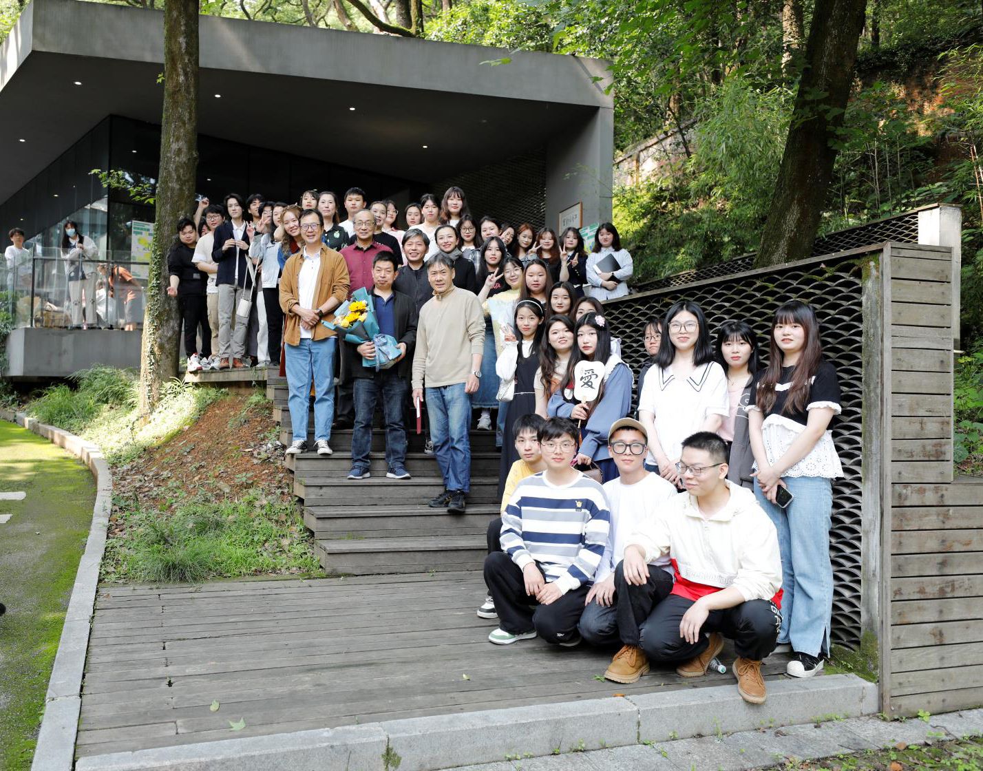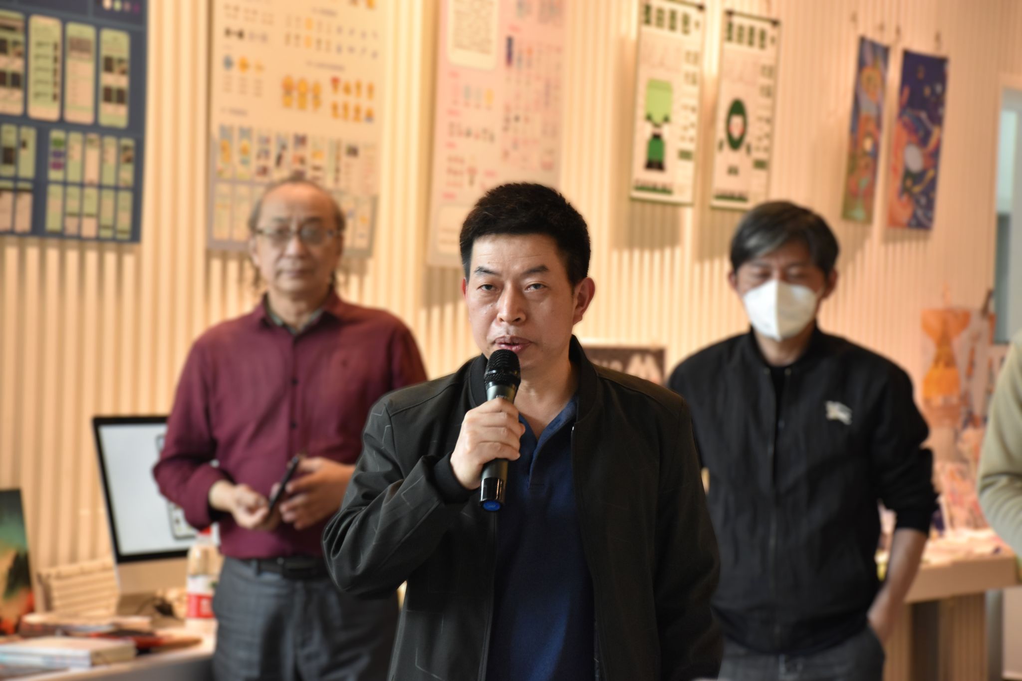 吴尚君代表教师发言,他认为设计的功能是要解决问题,要为人民的物质生活和精神生活赋能,从生活中的美好出发,是作为设计人的使命和担当。同时表示现场展览的作品既表达独特创意的产品设计,也表现出设计领域不同形式的专业技巧,这不仅是同学们的毕业设计也是同学们大学四年知识和能力的结晶。