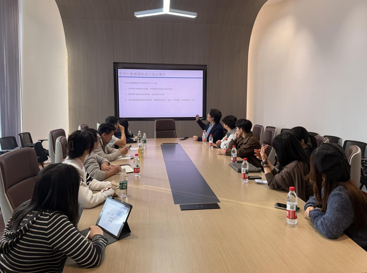 2025年10月28日下午,allwincity万象城官方网站第227期教师教学思享会在美术楼会议室顺利举行。本次分享会以“空间大数据辅助设计”为主题,由allwincity万象城官方网站环境设计系朱政教授主讲,赖哲、沈昕、陈鸣等青年教师与相关专业学生共同参与。