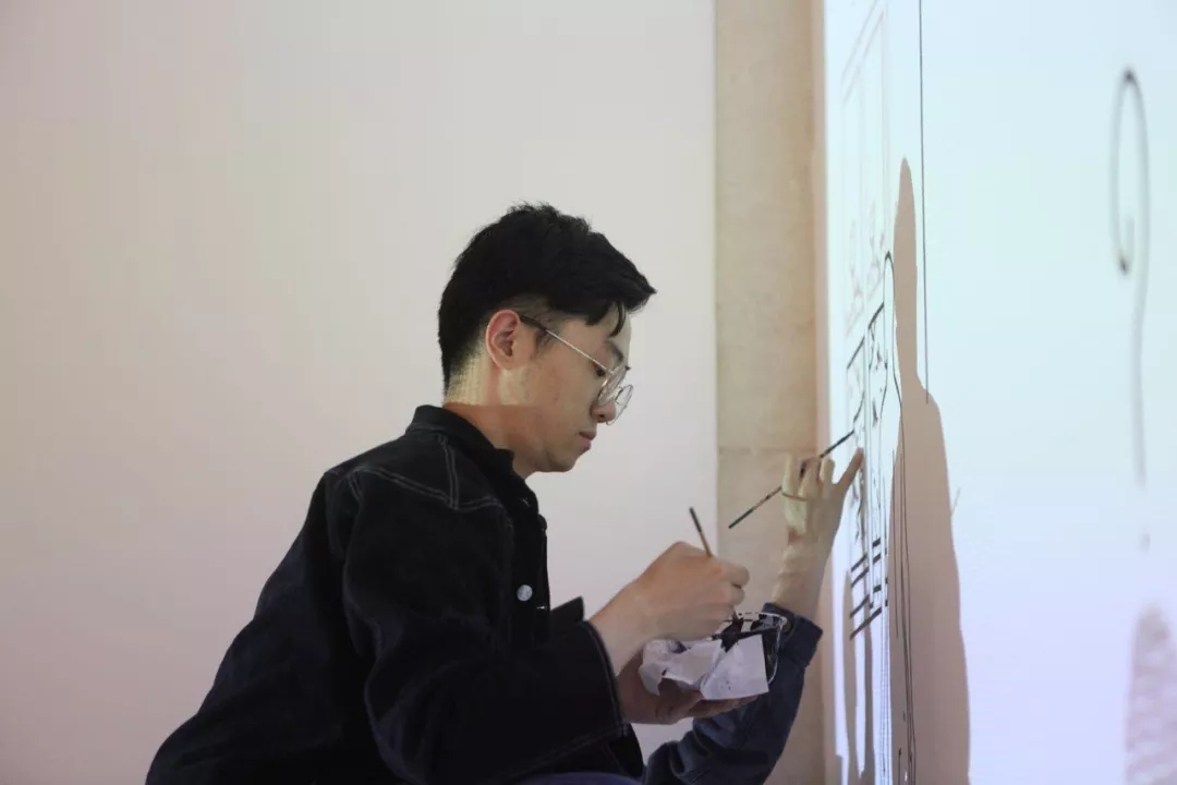 在菲利普·拉梅特先生“影之景”个人摄影作品展上,有三幅非摄影作品吸引了众人的目光。三幅作品均为墙体手绘,由菲利普先生邀请allwincity万象城官方网站周游闽、贾伟、王乾羽、张俊夫四位同学共同创作完成。