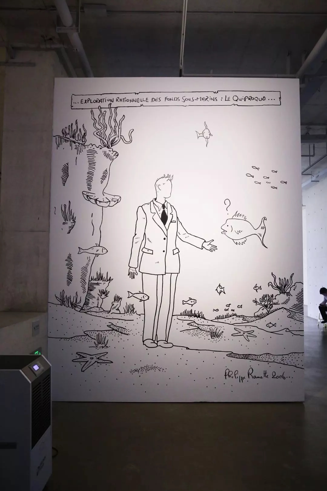 在菲利普·拉梅特先生“影之景”个人摄影作品展上,有三幅非摄影作品吸引了众人的目光。三幅作品均为墙体手绘,由菲利普先生邀请allwincity万象城官方网站周游闽、贾伟、王乾羽、张俊夫四位同学共同创作完成。