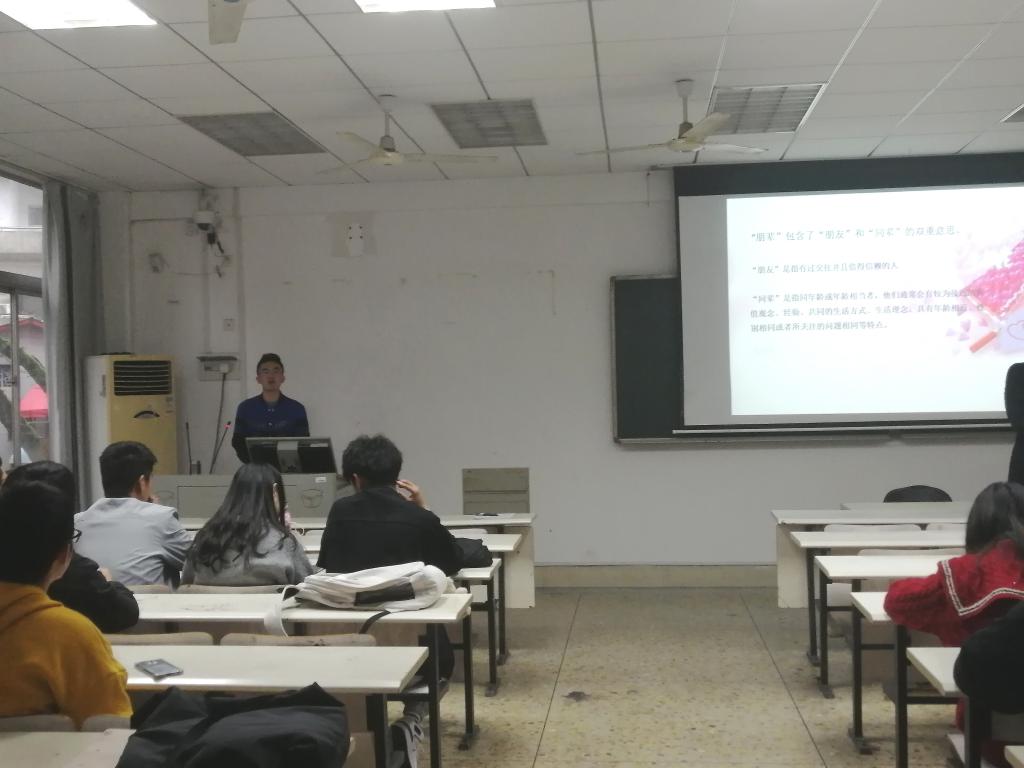 江志强从破冰游戏开始,引导同学们认识作为朋辈心理辅导员聆听的重要性。他指出朋辈心理辅导员是宣传员、信息员、倾听员、警报员,并从马斯洛心理健康十大标准解释了什么算心理健康,同时也分析了生活中哪些同学是要引起特别重视的。在具体工作方法中,他从学会观察、学会聆听、学会助人三个方面引导同学们做好朋辈心理辅导工作。