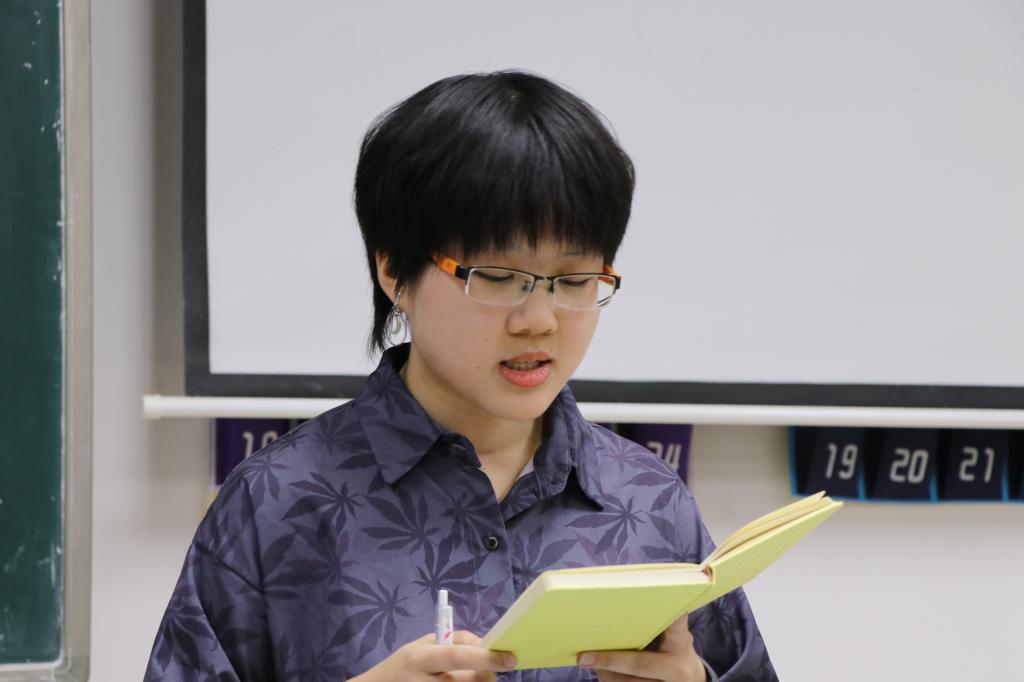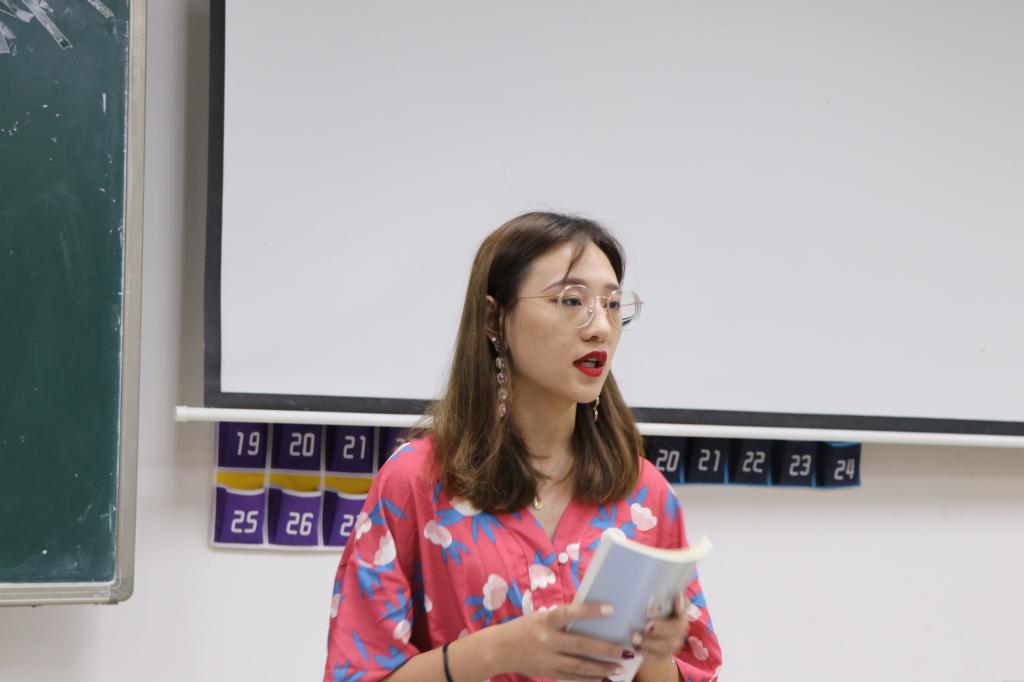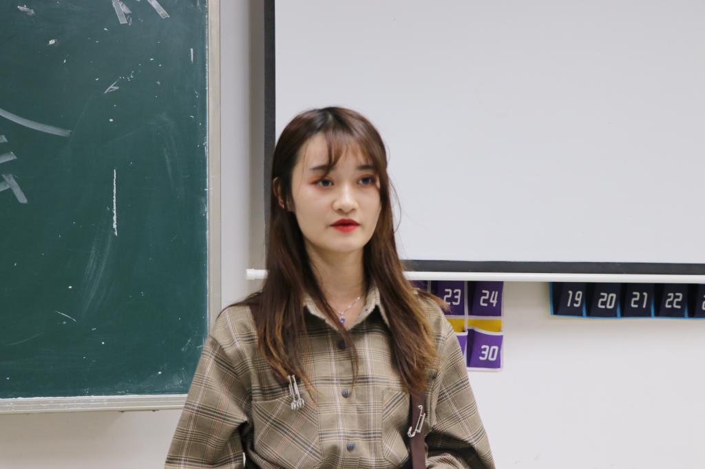 新任学社联指导卢碧瑜老师讲话,她感谢学院与同学们的信任,并希望在以后的工作中和大家一起努力,把三会一中心建设得更好。