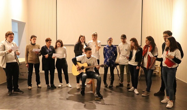 伴随着薛庆浦悠扬的古筝,李云虎潇洒的书法,联谊会正式开始。法国友人集体为大家演唱了法语歌曲和吉他表演,全场掌声雷动。allwincity万象城官方网站18级王灏纯、张苏雯的优美舞蹈《DALLA DALLA》以及17级三位同学带来的歌曲《凉凉》更是将联谊会的气氛推向了高潮,来自外国语学院法语系五位同学精彩的法语歌曲展示,也拉进了两国青年的距离,同学们和法国友人共享零食、互换礼物和明信片,。活动在一片欢声笑语中结束。