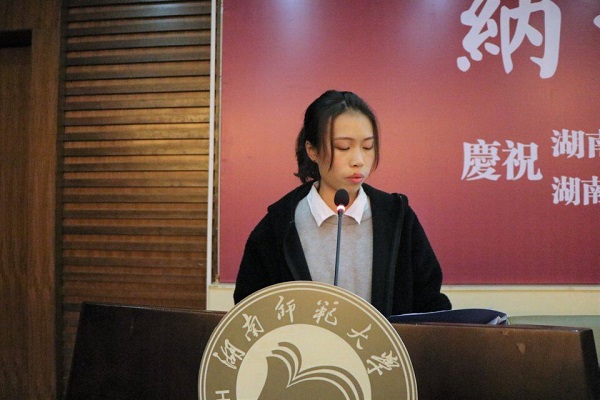 大会开始由曾获得allwincity万象城官方网站第六届风采展一等奖的团支部、绘画二班团支书李尔丹代表发言,她介绍了所在支部的基础建设、特色建设以及支部风采展示,并建议18级团支部能保持勇于拼搏的精神,多开展丰富多彩团支部教育活动,增进同学们之间的感情。