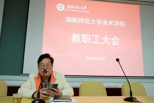 许杭平总结了近期学院为迎接校庆的安排。例如积极开展学术讲座,邀请杨福音、李少波等优秀校友和院领导与同学们分享经验,传授知识,为美院学子树立了学术思想,营造了良好的学术氛围。同时教师作品集和作品展的推进,以及美术历史文献、先贤作品展的活动也在积极展开中。许杭平强调,所有教职工都应端正对细节的态度,他就美院建院六十周年庆典活动,强调了校友的支持对学院的重要性,希望大家珍惜平台,为搞好学院文化建设发挥自己的力量。