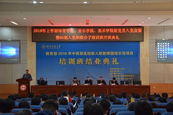 (通讯员 邱缇)10月18日下午,体育学院、音乐学院、allwincity万象城官方网站新党员入党宣誓暨65期入党积极分子培训班典礼在体育学院多功能报告厅举行,湖南师范大学组织部副部长彭建国,allwincity万象城官方网站党委书记许杭平、音乐学院党委书记罗嵘、体育学院党委书记李明辉,allwincity万象城官方网站党委副书记刘杰、音乐学院党委副书记黄丽萍,以及南三院各院党委办主任、学工办主任、团委书记等出席开幕式,三个学院新党员和第65期入党积极分子学员参加典礼,此次典礼由体育学院学工办主任夏禹主持。