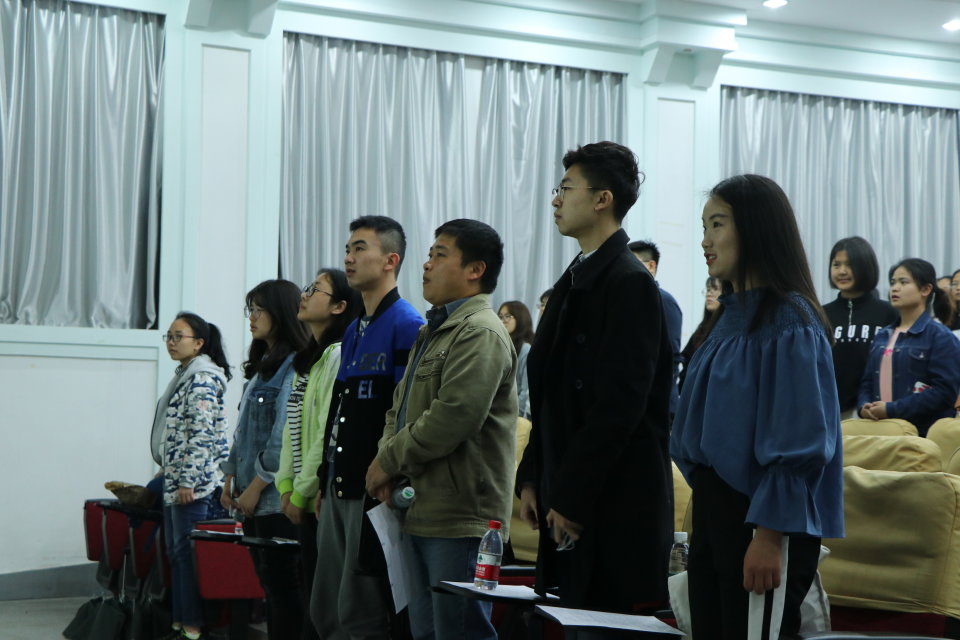 论坛在庄严的团歌拉开帷幕,四位主讲人分别从“笔墨当随时代” 、“美术如何服务社会”、“用艺术谱写新时代中国梦”、“怎样提高自身艺术修养”四个方面阐述主题。帅姝茜以让·弗朗索瓦·米勒和徐悲鸿的作品为例讲述了艺术的人民性、时代性和家国情怀。胡苗苗分享了服务社会的策划案,希望通过发挥美术独特的优势,对残障儿童的心理有所影响对心灵的有所塑造。安占恩分享了自己创业经历并借用习近平主席提出的青春是用来奋斗的鼓励大家要勇立时代潮头,做时代的弄潮儿,无愧大好青春。盛露通过“二十公里法则”,从坚持、态度、自律、交流四个方面解答了“我们怎么样才能提高自身的艺术修养,让自己成为高峰”。