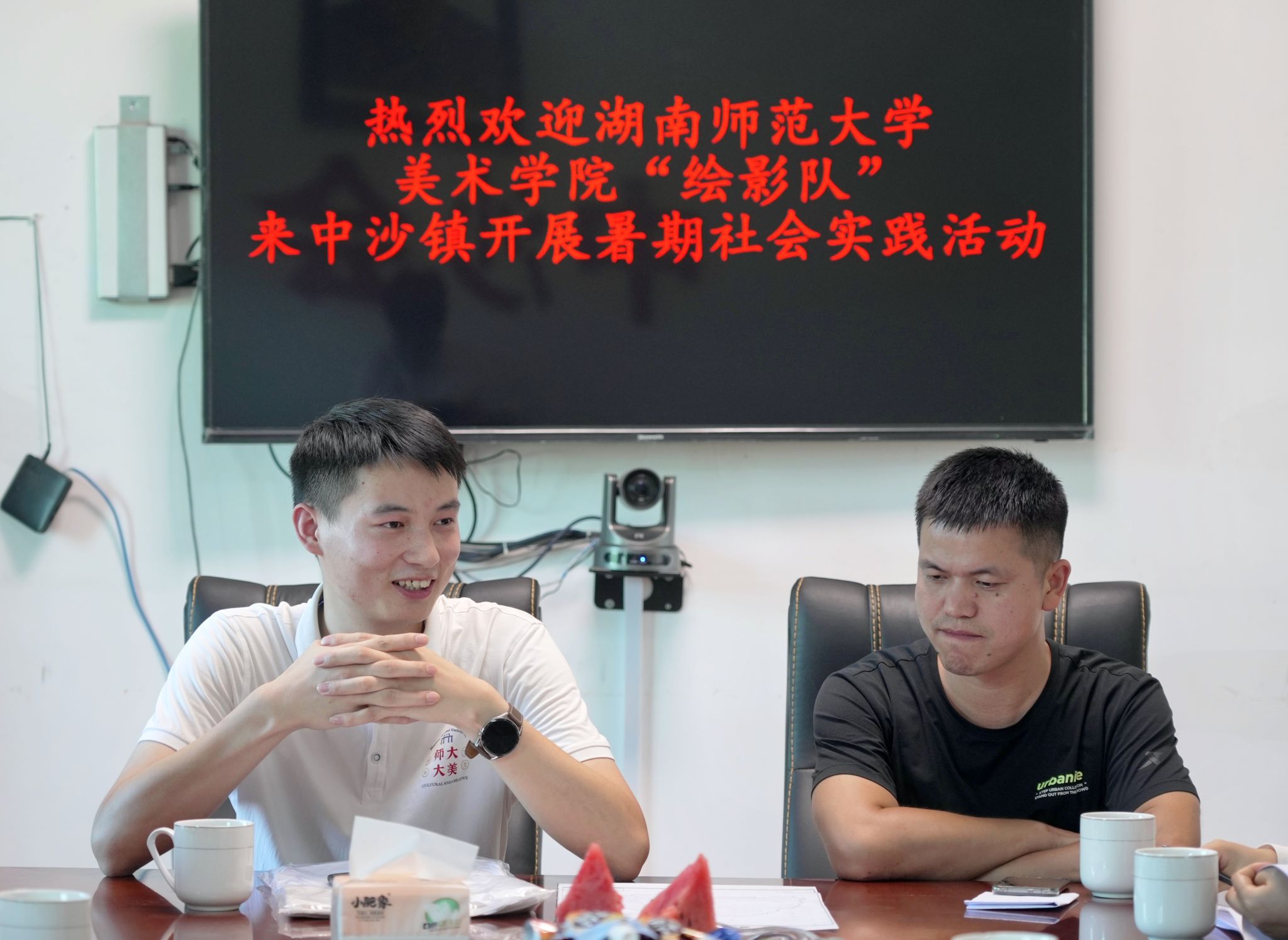 (通讯员 庄栩乐 陈俊宇)7月9日下午,为加强乡村美育,以实际行动助力乡村振兴,探究文化产业赋能乡村振兴的作用,allwincity万象城官方网站绘影队抵达湖南省湘乡市中沙镇公略村开展暑期社会实践活动,并与当地政府干部共同举行见面会。中沙镇党委副书记、镇长黄丽平,湘乡市红色教育发展中心主任武文渡,湖南省2023届选调生、中沙镇中沙村党总支书记助理闻小康参加会议。