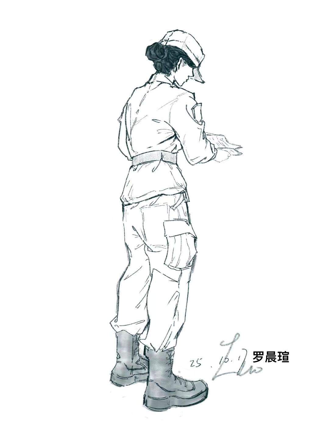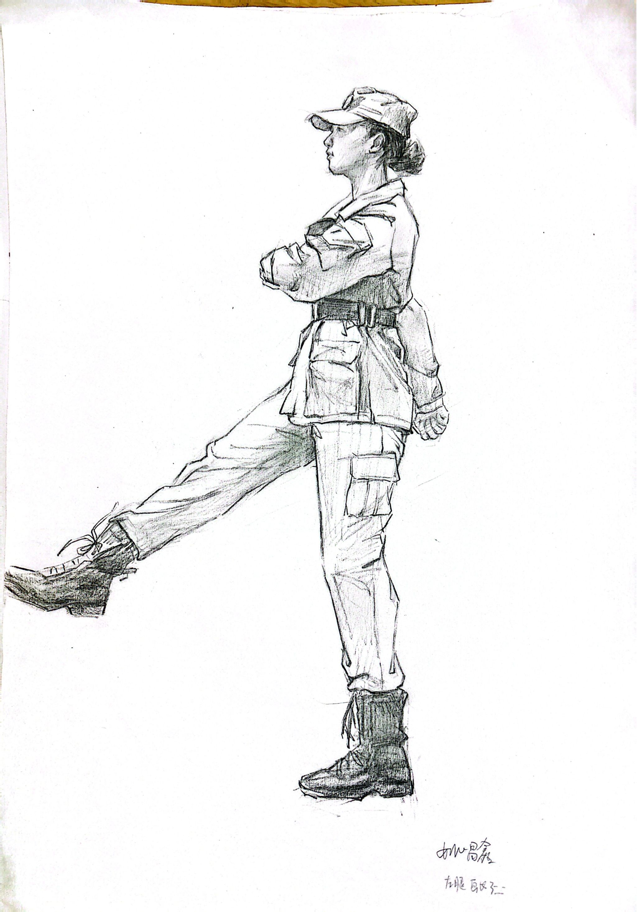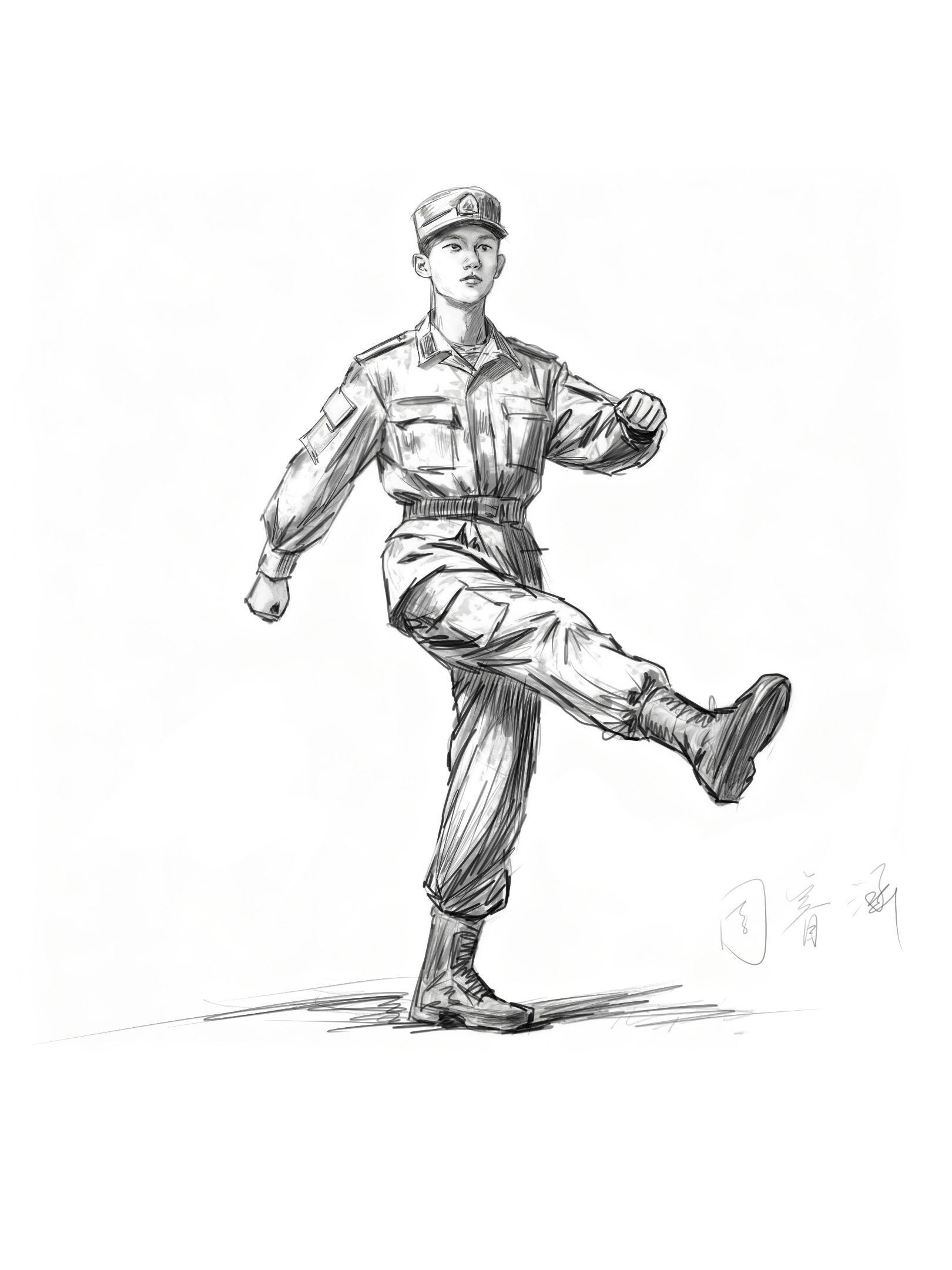 画笔与纸张,是他们参与军训的独特方式。有人以素描细致勾勒标准军姿,线条起落间复刻着军人的挺拔;有人专注捕捉光影变化,让训练场的明暗成为画中生动背景;还有人用速写记录同伴的笑容与坚持,将瞬间的感动定格成永恒。在他们的作品里,正步的节奏化作线条的韵律,口号的力量融入色彩的温度,每一幅画都是军训时光的真实记录,更是青春热血的鲜活注脚。