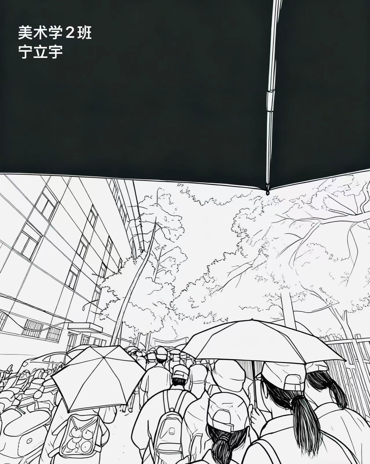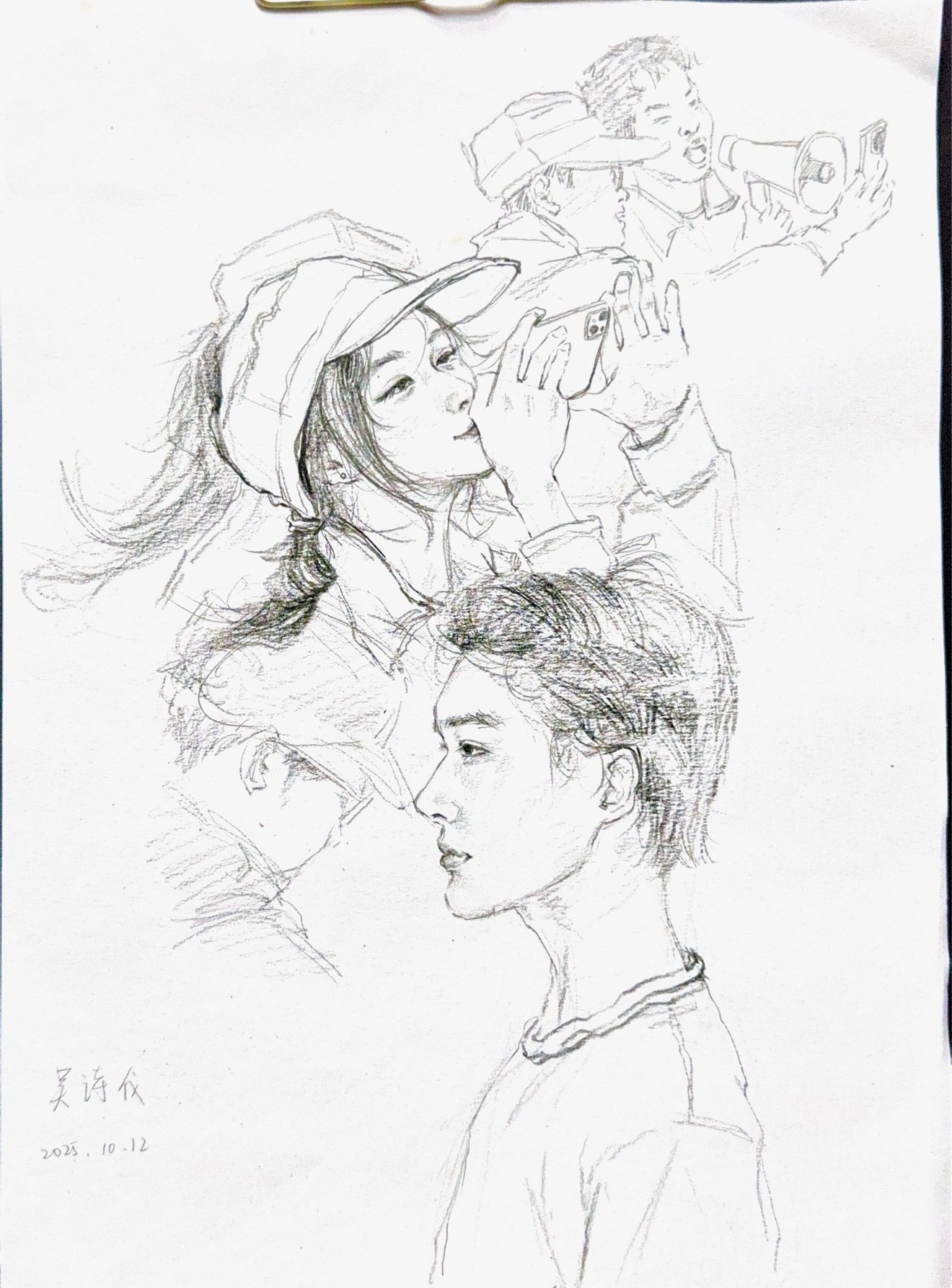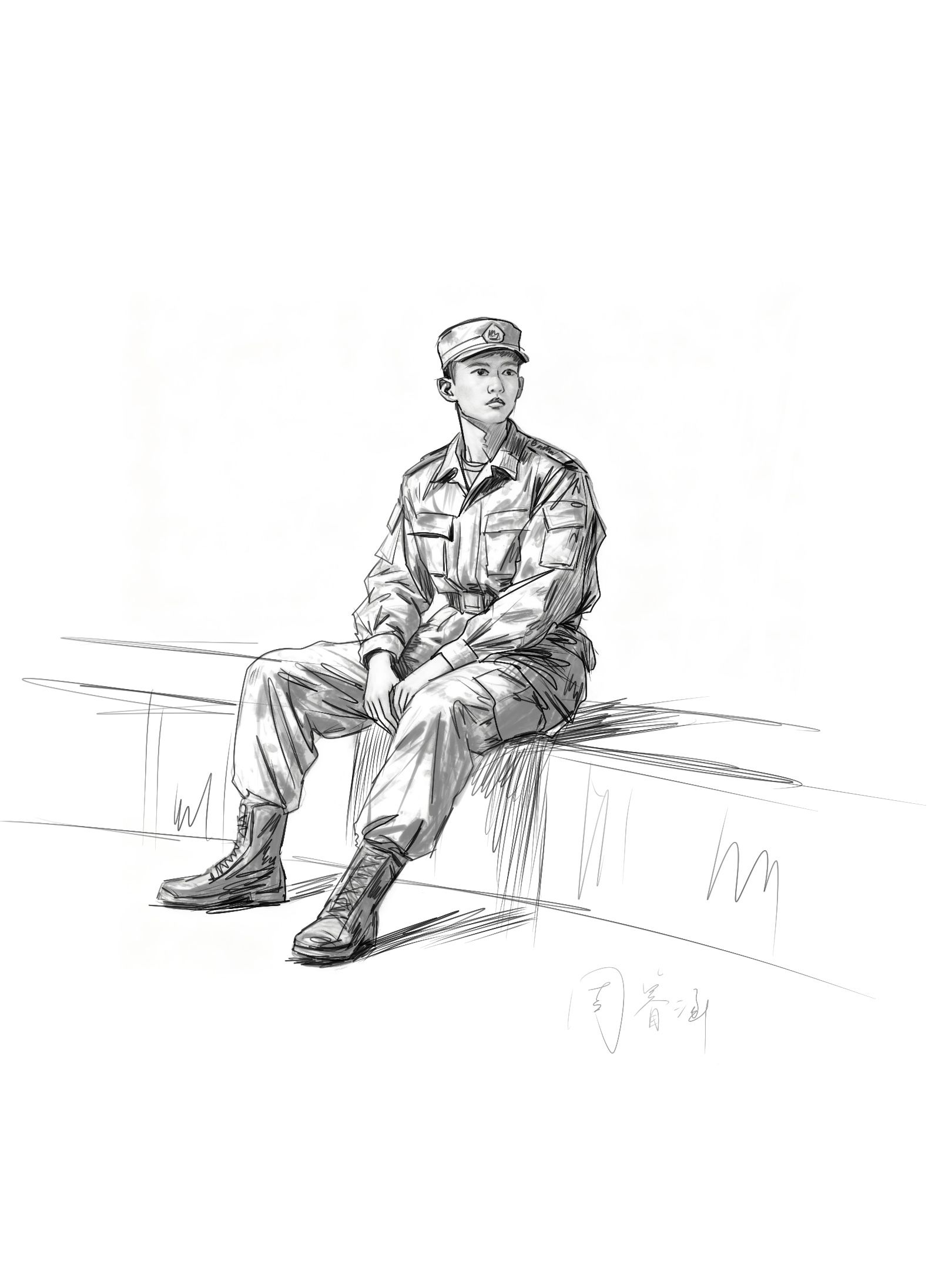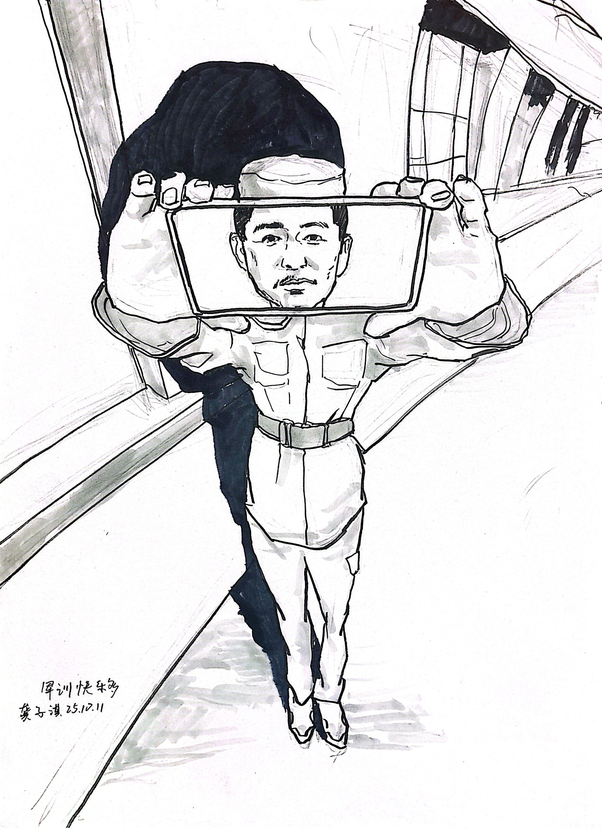 画笔与纸张,是他们参与军训的独特方式。有人以素描细致勾勒标准军姿,线条起落间复刻着军人的挺拔;有人专注捕捉光影变化,让训练场的明暗成为画中生动背景;还有人用速写记录同伴的笑容与坚持,将瞬间的感动定格成永恒。在他们的作品里,正步的节奏化作线条的韵律,口号的力量融入色彩的温度,每一幅画都是军训时光的真实记录,更是青春热血的鲜活注脚。