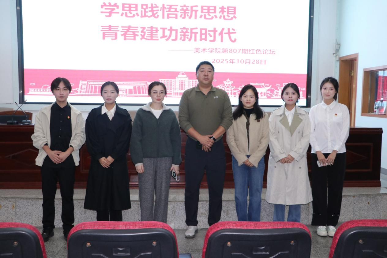 (通讯员 唐斯斯 蒋语卉 袁嘉俊)学思践悟,汲取榜样力量;青春建功,绘就时代新篇。10月28日中午,我院第807期红色论坛在美术楼举行。 院党委副书记覃志斌,院学工办主任、青年传媒中心指导老师、2024级辅导员王璐璐,院团委指导老师、2023级辅导员张蝶出席。团委办公室负责人何思颖主持。