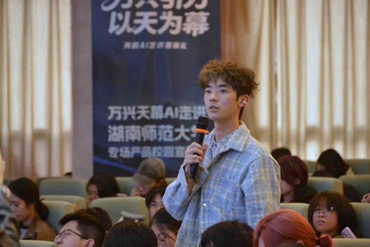 在交流环节中,同学们积极参与提问,共同探讨了有关万兴天幕产品较同赛道产品的突出优势以及其针对人才的招募计划等问题。同学们都细心思考,借此宣讲会之机表达对AI技术发展的疑问,现场氛围热烈。