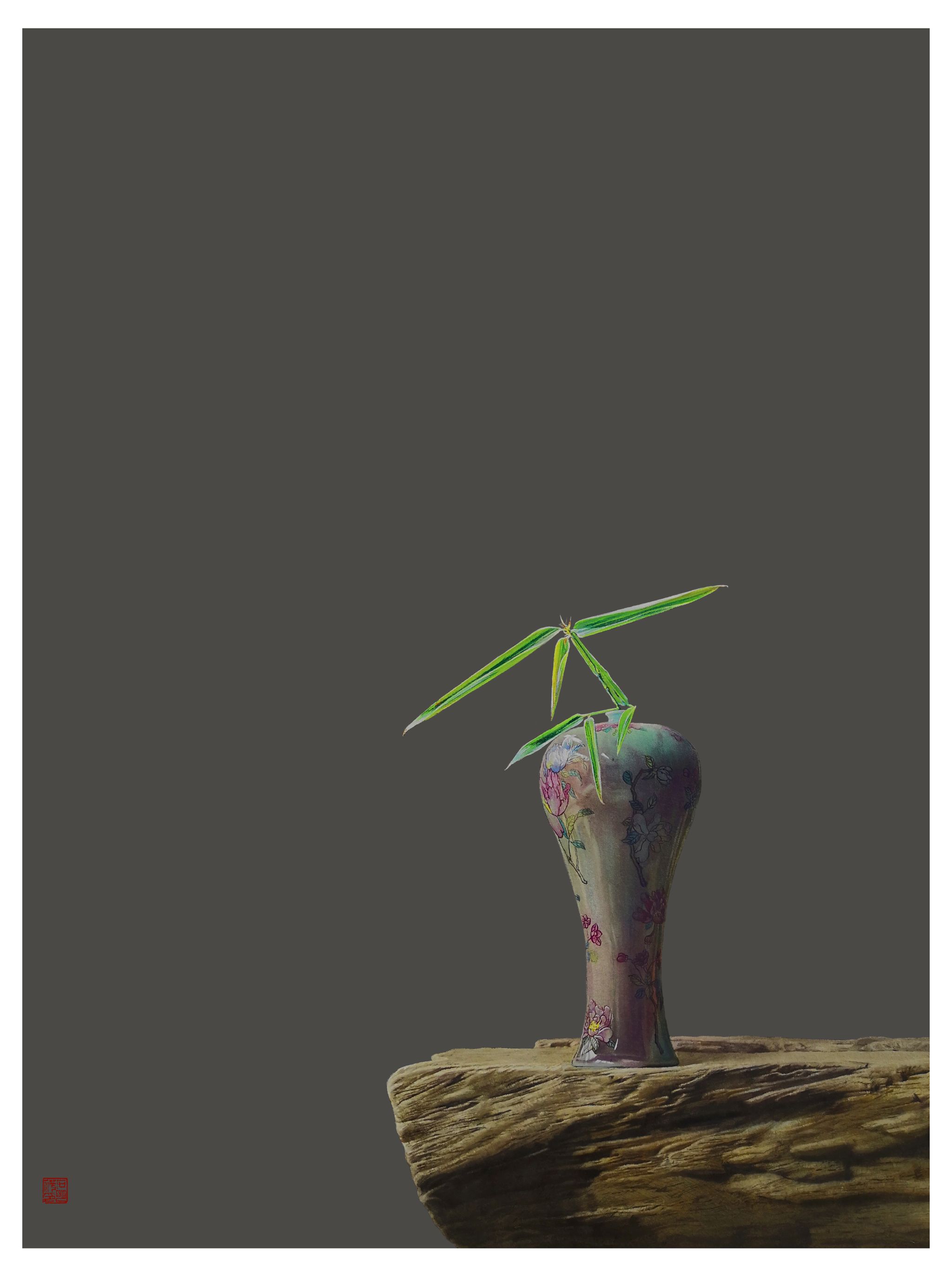 水彩画《静时光·修竹》 76cmX56cm 2018年