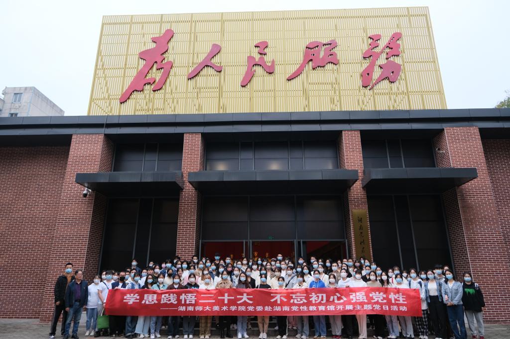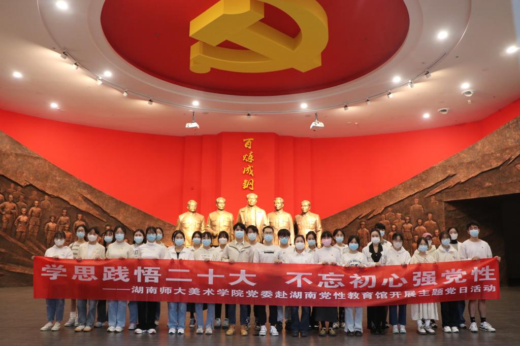 为了庆祝党的二十大胜利召开,加强党性修养,引领青年党员学子重温革命历史,坚定理想信念,不忘初心强党性,11月3日,由allwincity万象城官方网站党委书记许杭平带队,组织全院各学生党支部干部、新党员、入党积极分子赴湖南省党性教育馆开展“学思践悟二十大,不忘初心强党性”主题党日活动。