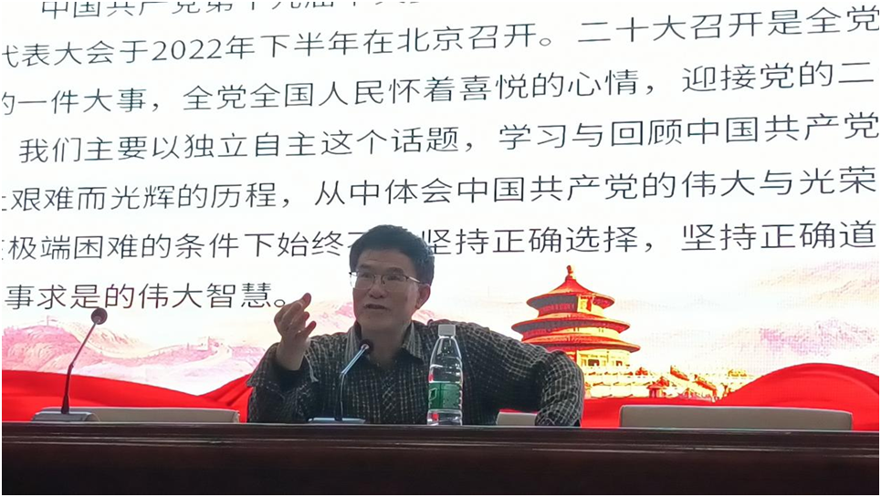此次专题党课紧紧围绕独立自主这个话题展开,学习与回顾了中国共产党在获得独立自主道路上艰难而光辉的历程,从中体会到中国共产党的伟大与光荣,体会到中国共产党人在极端困难的条件下始终不渝坚持正确选择,坚持走独立自主的正确道路,体会到共产党人百折不挠的勇气与实事求是的伟大智慧。