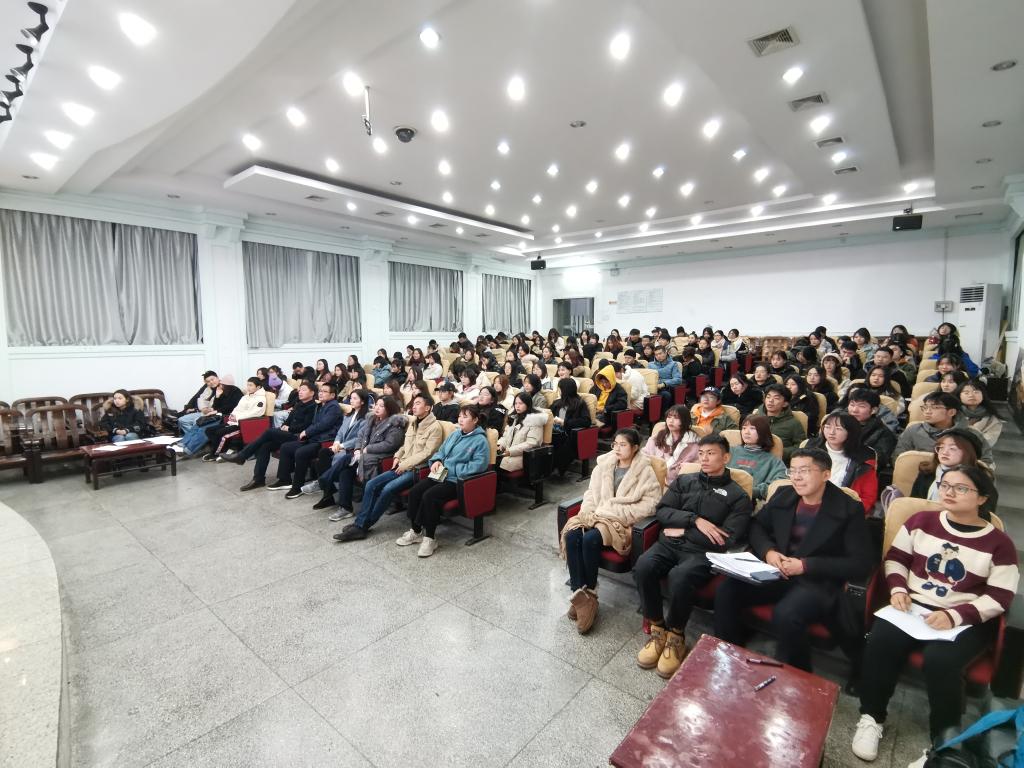 为深入学习贯彻党的十九届四中全会精神,扎实推进主题教育的开展,11月28日下午,我校在国际学术报告厅举行了学习贯彻党的十九届四中全会精神省委宣讲团报告会,省委宣讲团成员、省委统战部副部长符俊根作宣讲报告。省委主题教育第十二巡回指导组组长周清明,我校党委书记蒋洪新、校长刘起军等全体在家校领导出席会议。我院教职工党员、学生党员与入党积极分子在美术楼115报告厅共同聆听了宣讲。