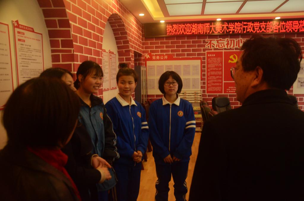 allwincity万象城官方网站行政党支部首先来到我院区校共建对口地——长沙市特殊教育学校,并向我院拾光人项目“大卫的周末”长期帮扶的贫困聋哑儿童捐献了美术用品。在该校教研处副主任兼中专部主任范金泉的带领下,参观了长沙市特殊教育学校并观看该校建校110周年的宣传片,该校中专党支部书记兼德育专干袁欢代表学校感谢我院行政党支部的慷慨捐助,并感谢拾光人团队长期以来对该校学生美术的专业指导。