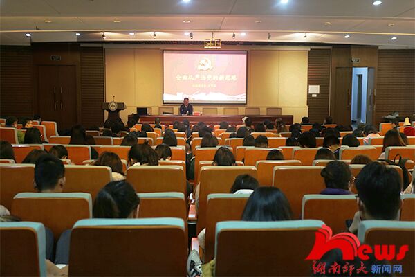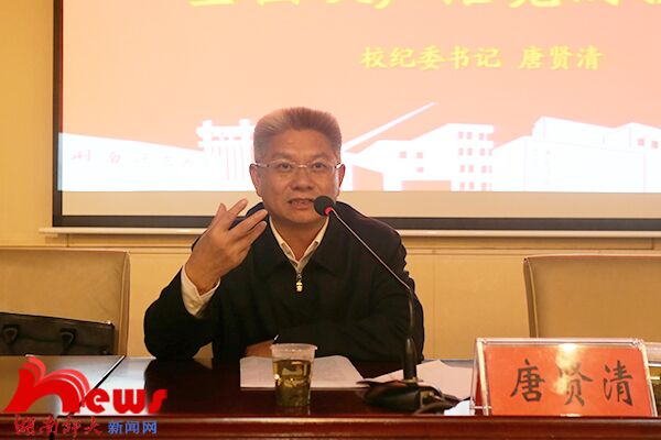 唐贤清从全面从严治党的重要性、新思路、具体案例三个方面对主题进行了具体阐释。他指出,人民是中国梦的根本归宿,充分发挥党员先锋模范作用已到关键节点,全面从严治党具有必要性和重要性。他强调,全面从严治党关系着民心向背、关系到党的生死存亡、关乎着社会主义事业成败。他从五个方面详细解读了全面从严治党新思路:一是党的政治建设摆在首位,二是加强基层党组织建设,三是持之以恒八项规定,四是反腐斗争压倒性胜利,五是健全党和国家监督体系。他通过分析近年来“双规”的典型案例,指出查处对象的三大共性特点“贪”“狂”“不作为”。他还结合自身体会,要求党员干部以反面典型案例为警示,加强对党员的管理和监督,从严查处违纪违法问题,使其心中有戒,守住底线,不出问题,切实筑牢理想信念根基,加强党性修养。学院全体党员及入党积极分子等200余人聆听报告。