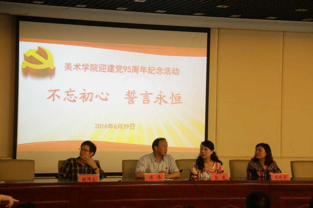 (通讯员 王天吟)6月29日上午,为了进一步开展“两学一做”学习教育,allwincity万象城官方网站在设计楼报告厅举行“不忘初心,誓言永恒”为主题的迎建党95周年纪念活动。院党委书记谭伟,院党委副书记余英,副院长陈晓华,院关工委常务副主任胡师正等出席,会议由院组织人事秘书张冰侠主持。
