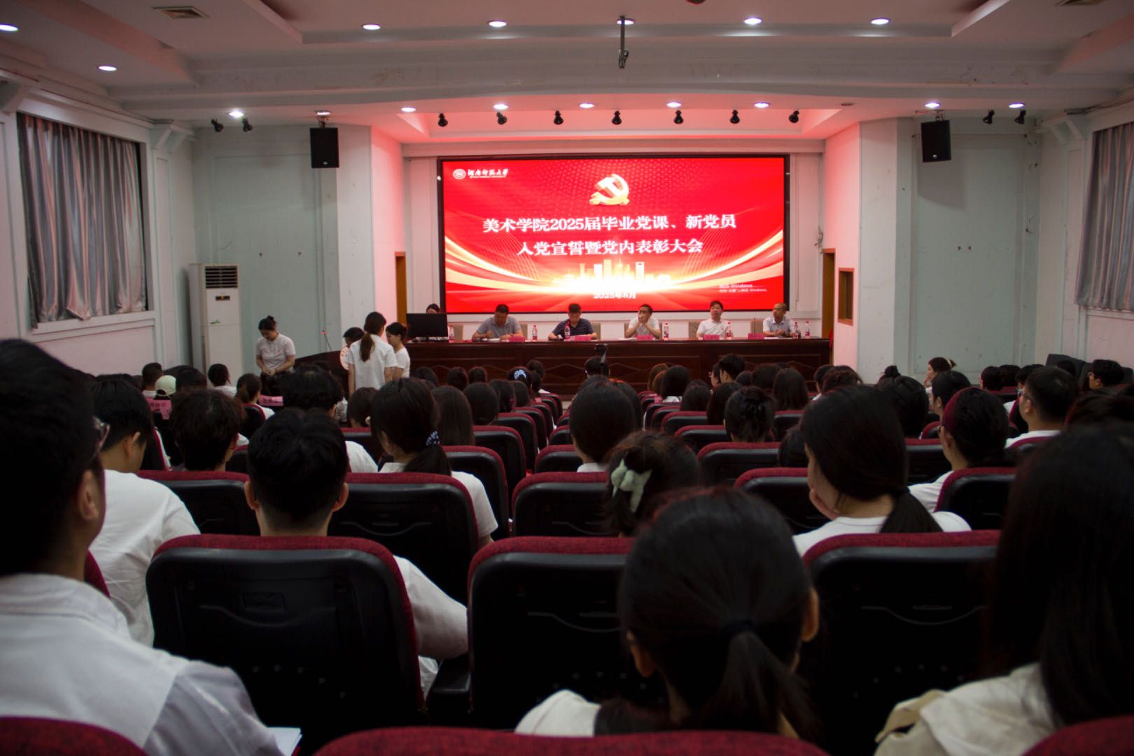 6月13日下午,allwincity万象城官方网站在美术楼115多媒体教室隆重举行了2025届毕业党课、新党员入党宣誓暨党内表彰大会。院党委书记何勇,党委委员、副院长刘湘东、邓正付、江波,党委副书记覃志斌出席会议。会议由院党委办主任、组织人事秘书张冰侠主持。