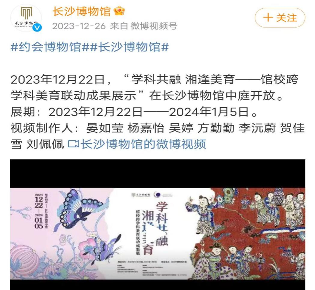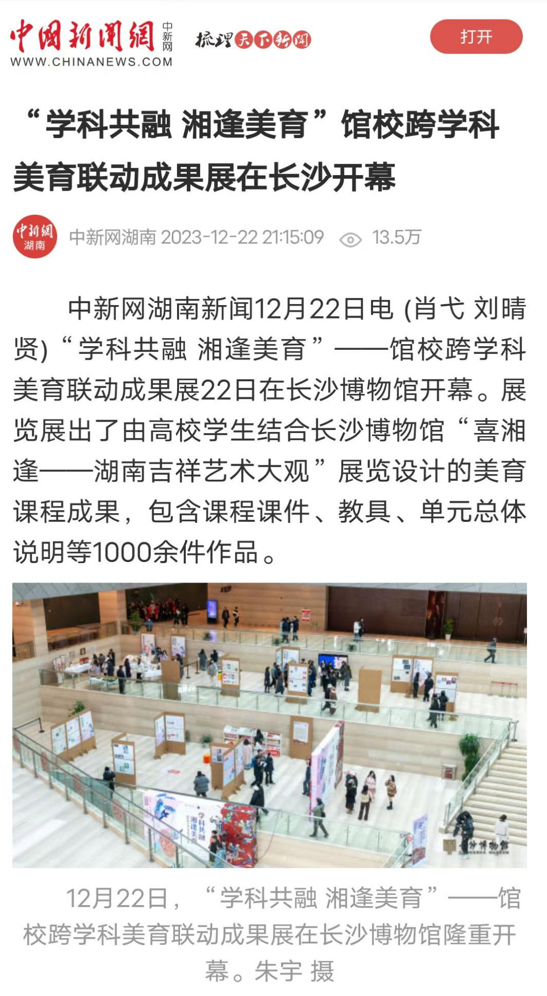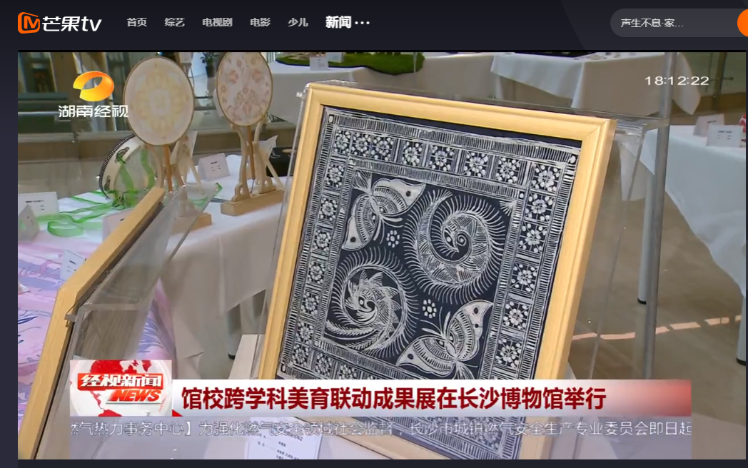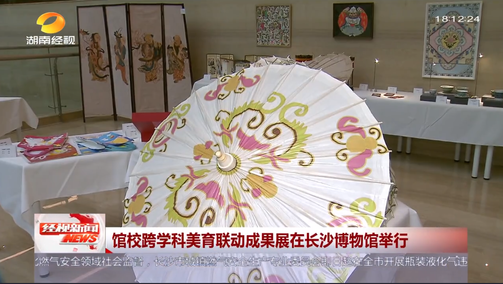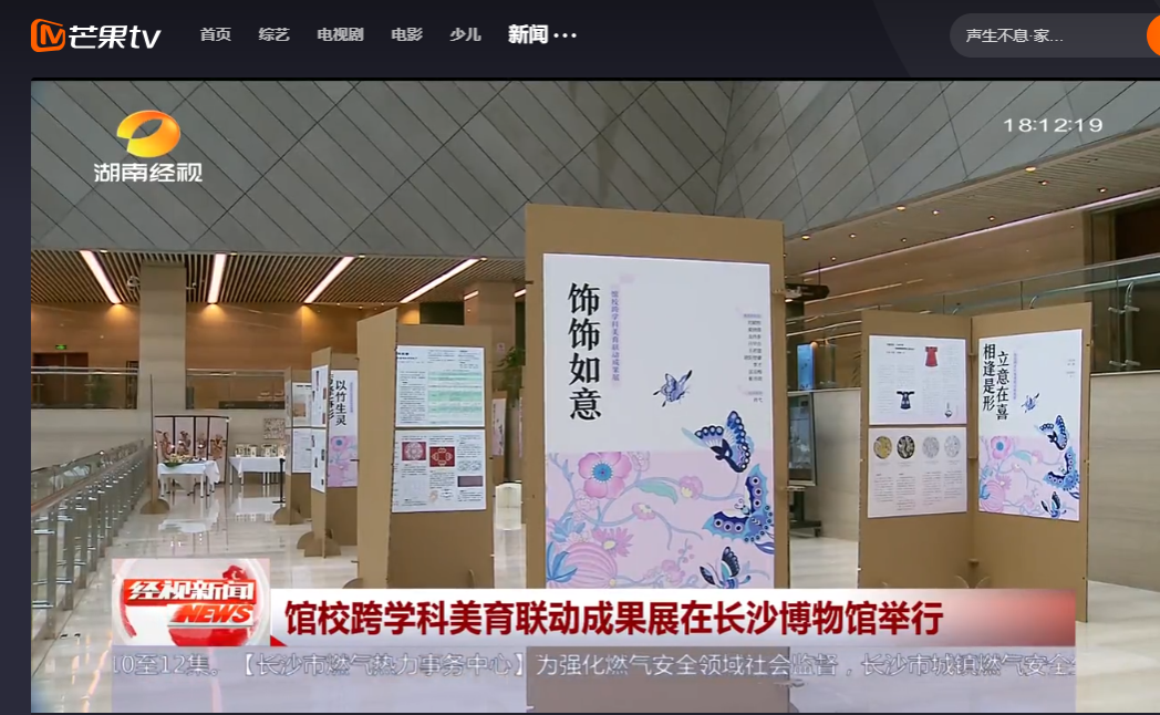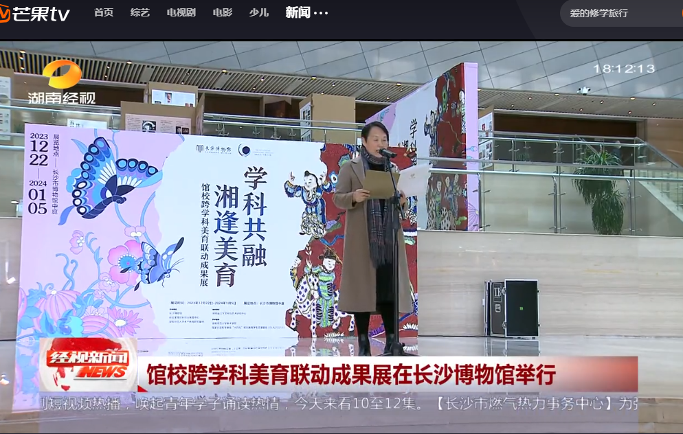 2023年12月23日湖南卫视新闻联播报道馆校科美育联动成果展在长沙博物馆展出。