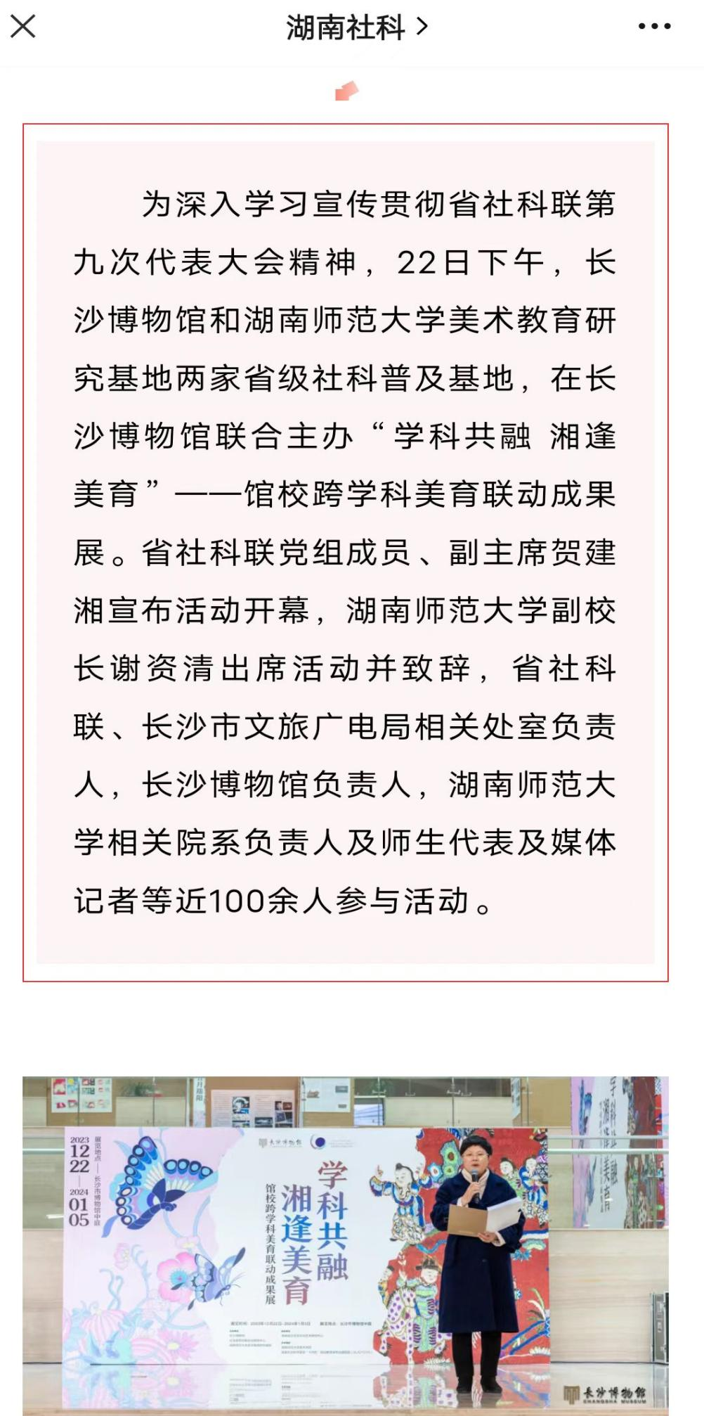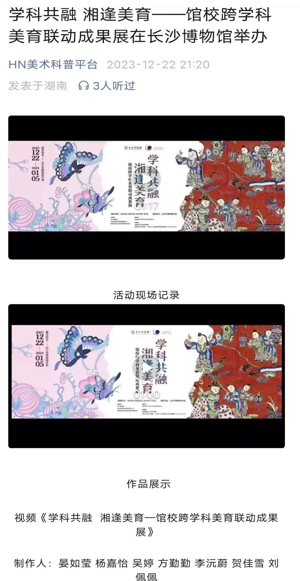 “学科共融 湘逢美育”——馆校科美育联动成果展活动影响广泛多家媒体报道