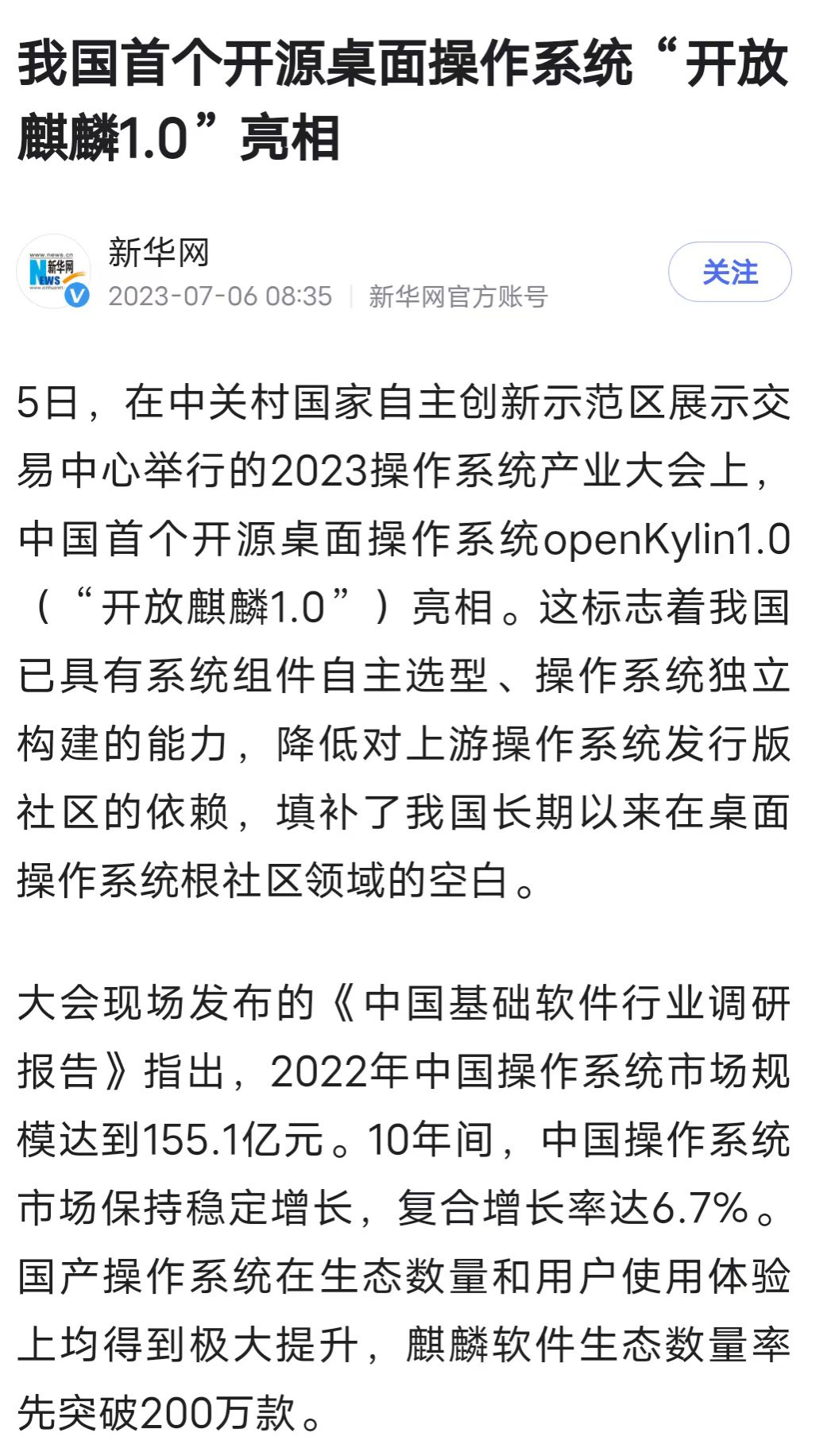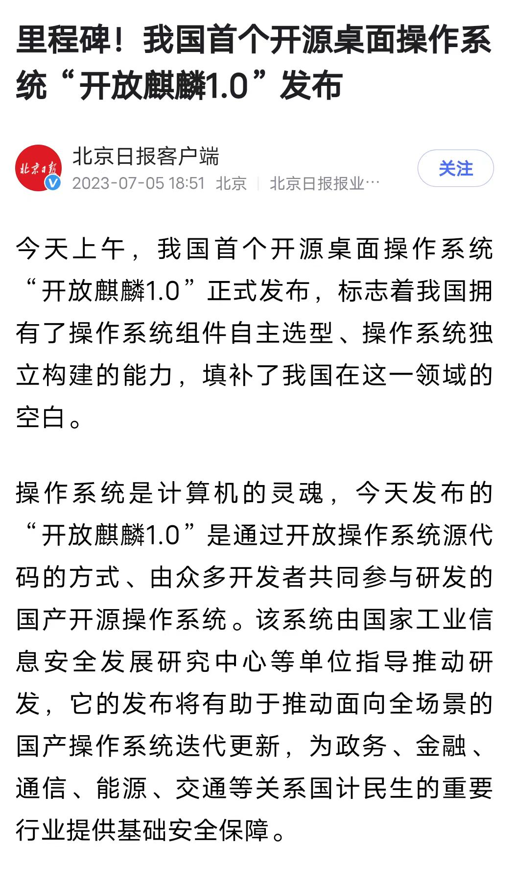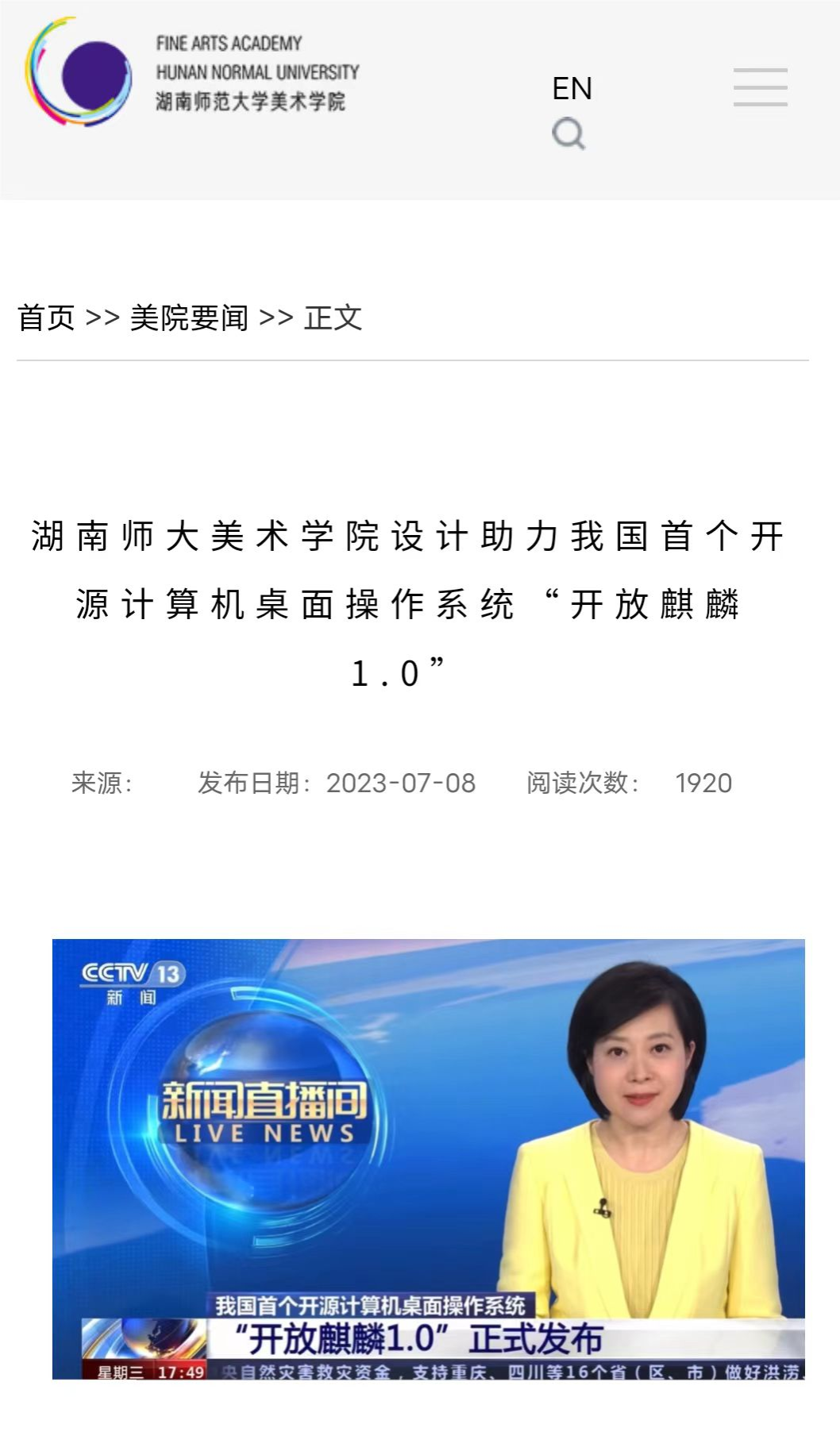 2023年7月5日,我国首个开源计算机桌面操作系统“开放麒麟1.0”正式发布,标志着我国拥有了操作系统组件自主选型、操作系统独立构建的能力,填补了我国这一领域的空白。《中央电视台》、《人民日报》等媒体对此进行了专题报道。此次发布的“开放麒麟1.0”版本系统中,allwincity万象城官方网站李少波教授领衔的“国产自主操作系统艺术设计重点实验室”团队参与了系统的桌面环境和印主题,图标、光标、控件、壁纸、音效等内容的设计工作。
